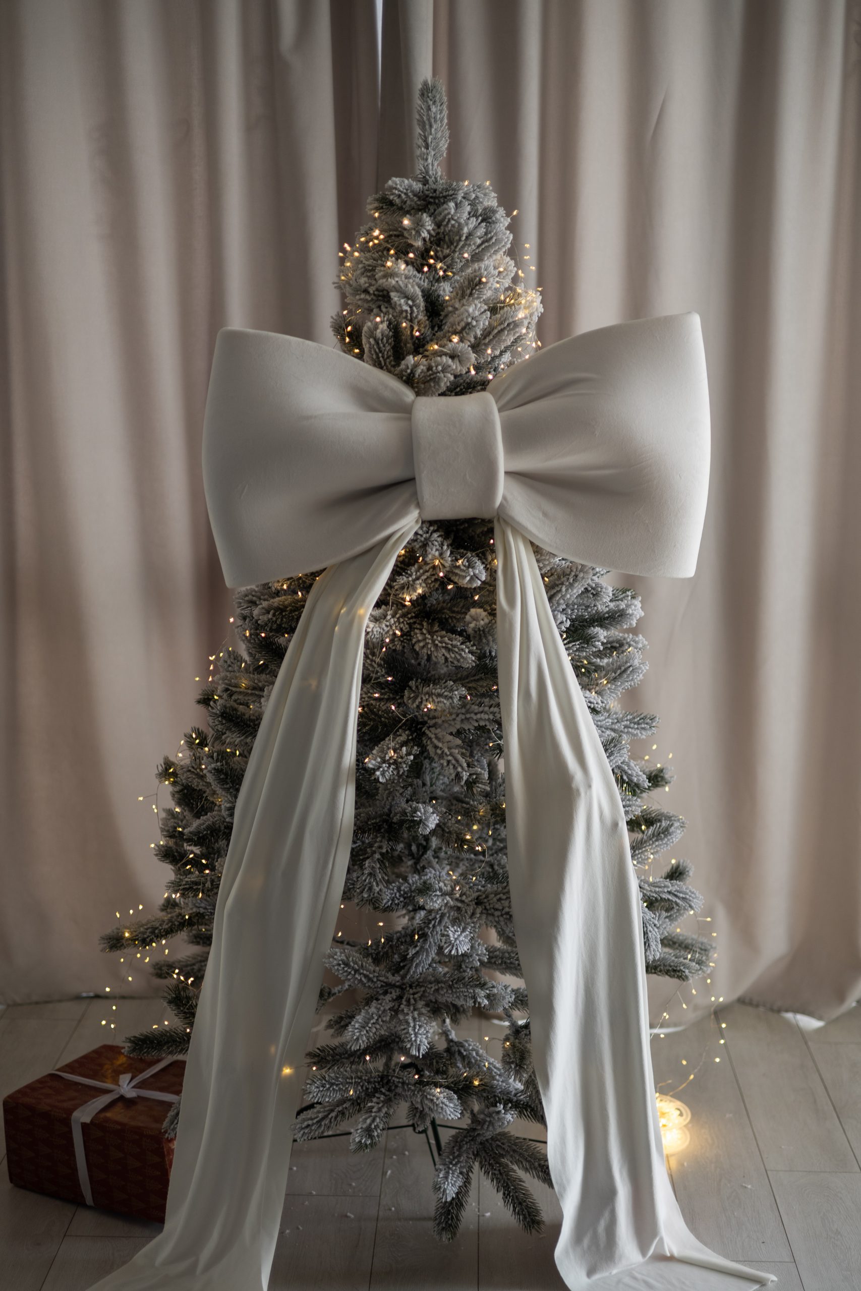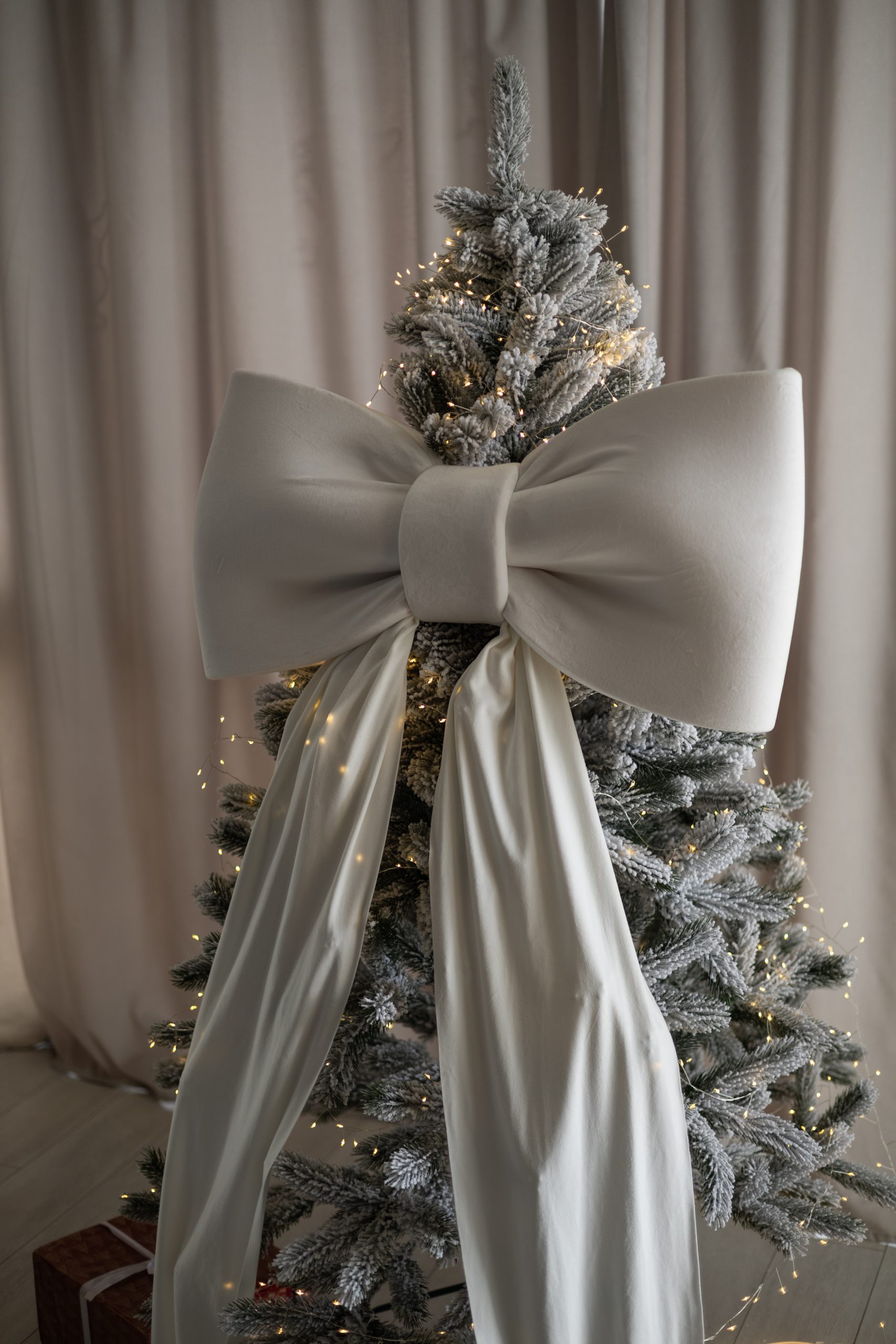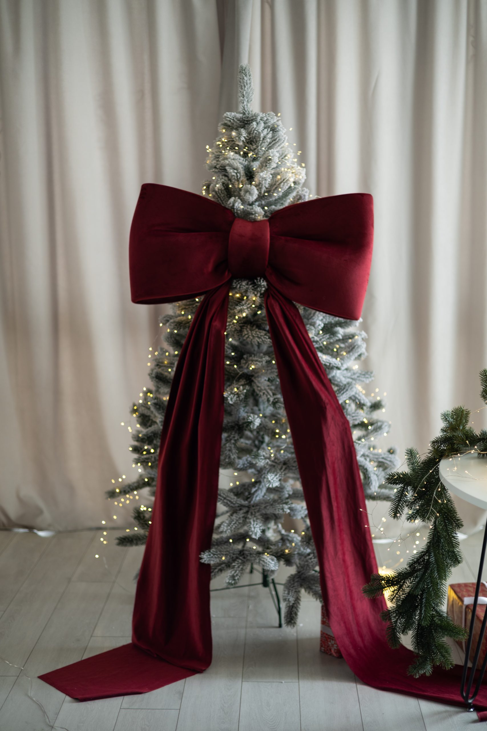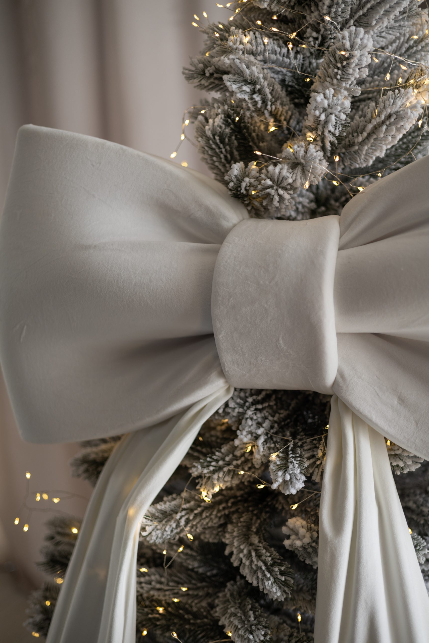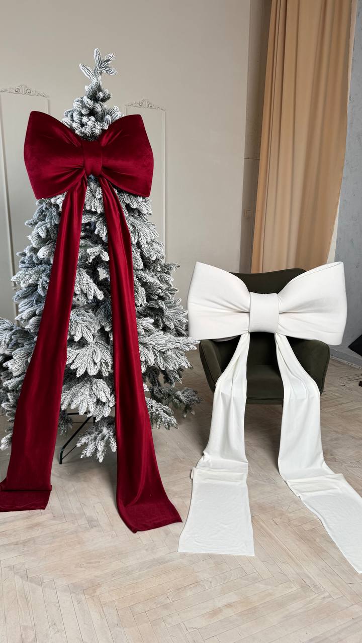 ✨ Виготовлений із м’якого велюру, бант виглядає розкішно та приємно на дотик. Його насичена червона або ніжна біла палітра гармонійно поєднується з будь-якими іграшками, гірляндами та декором.