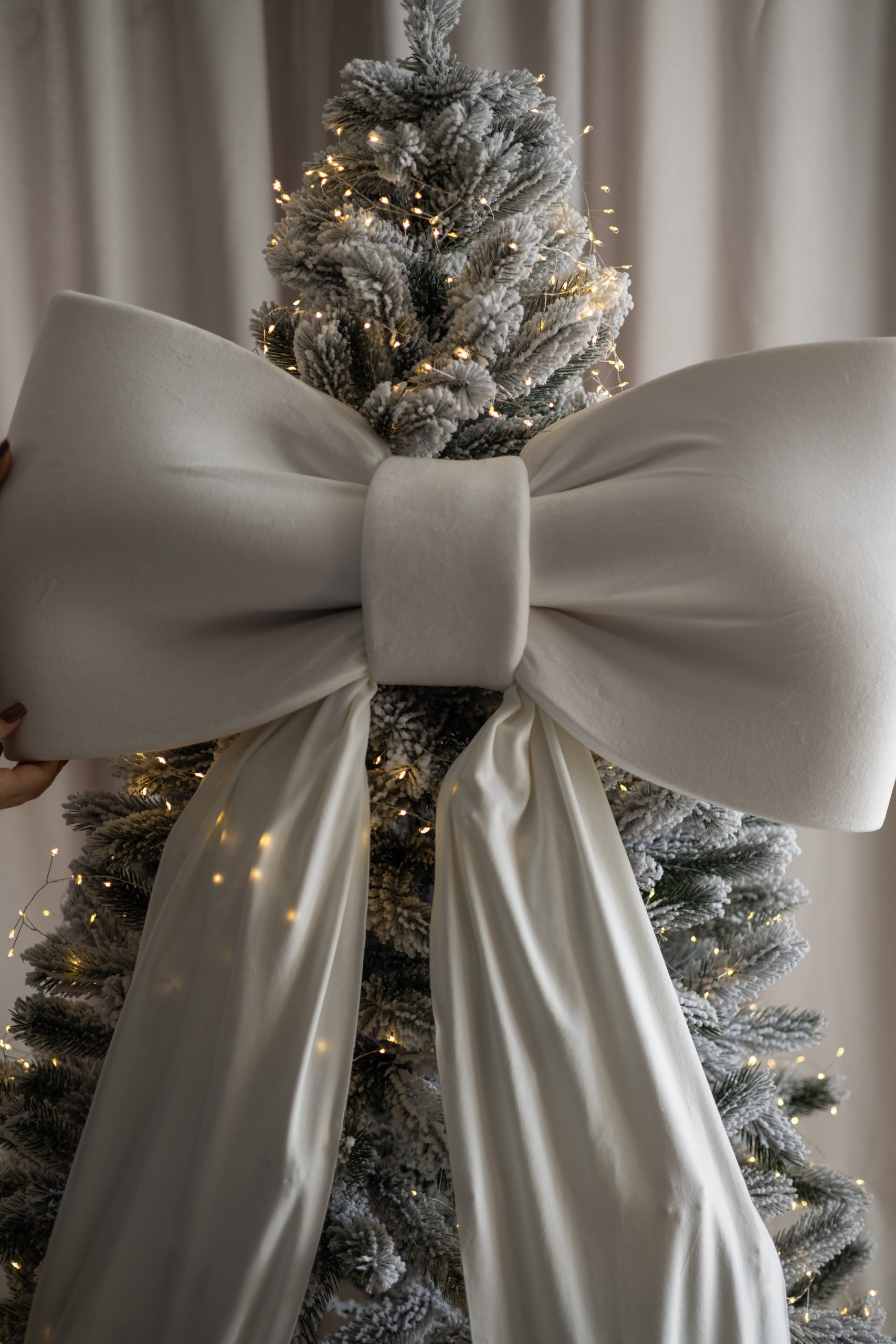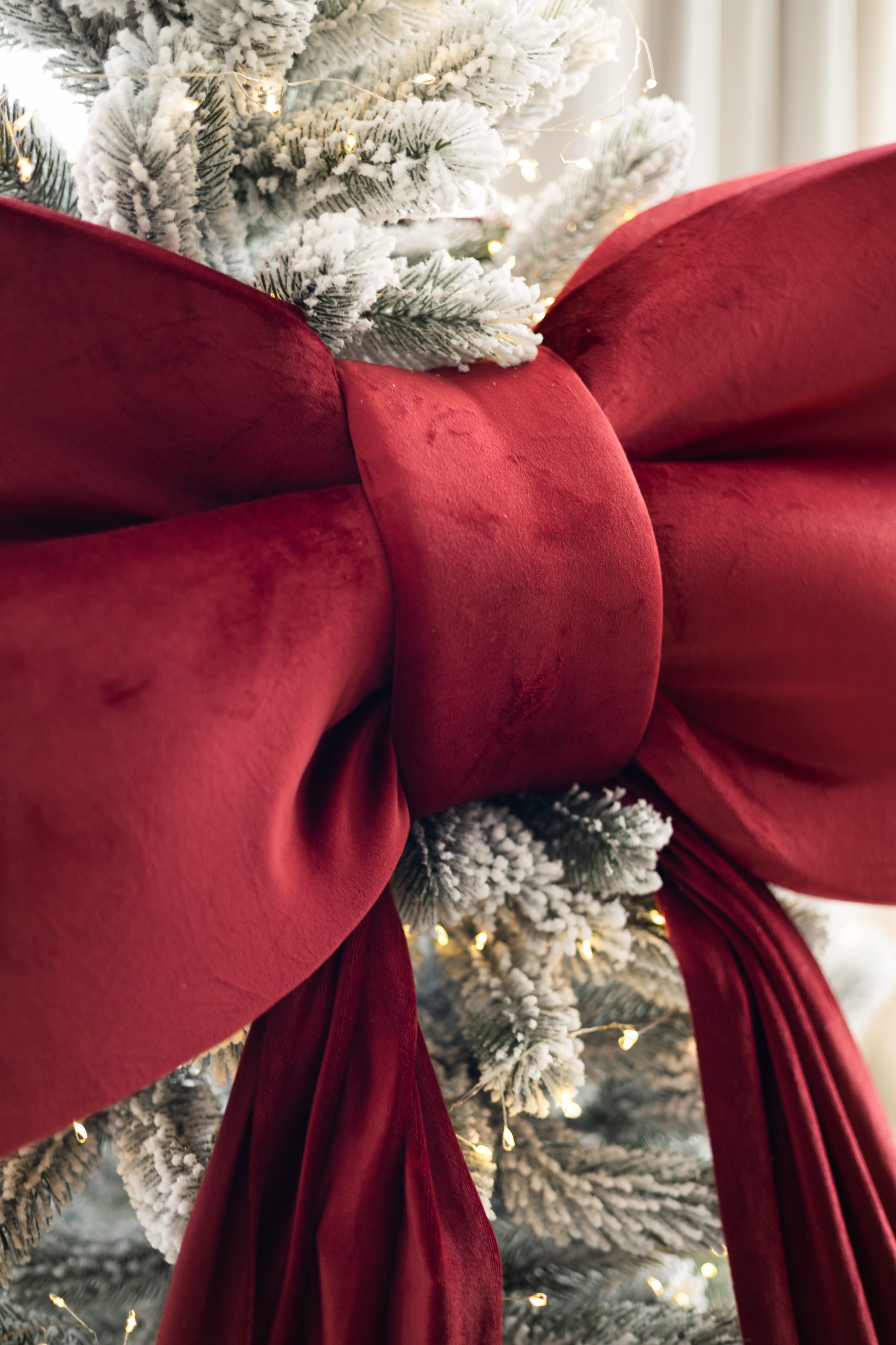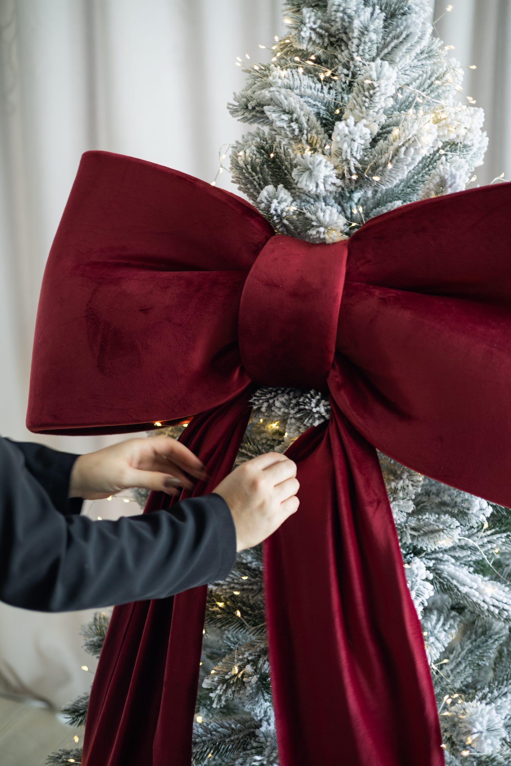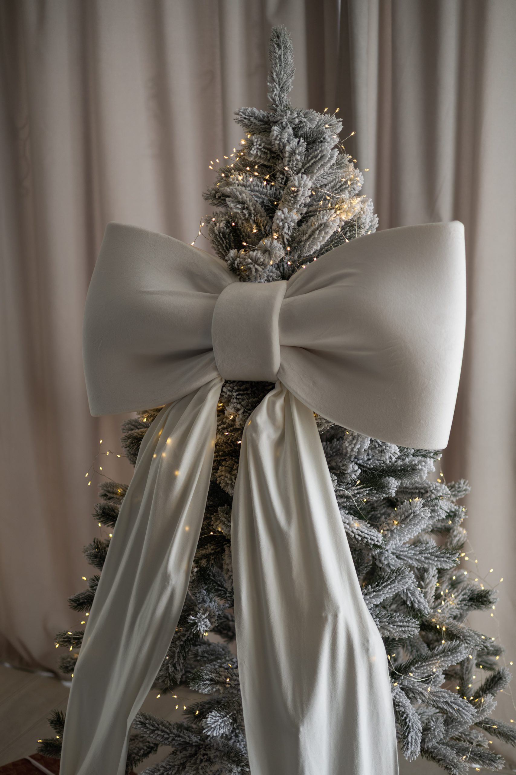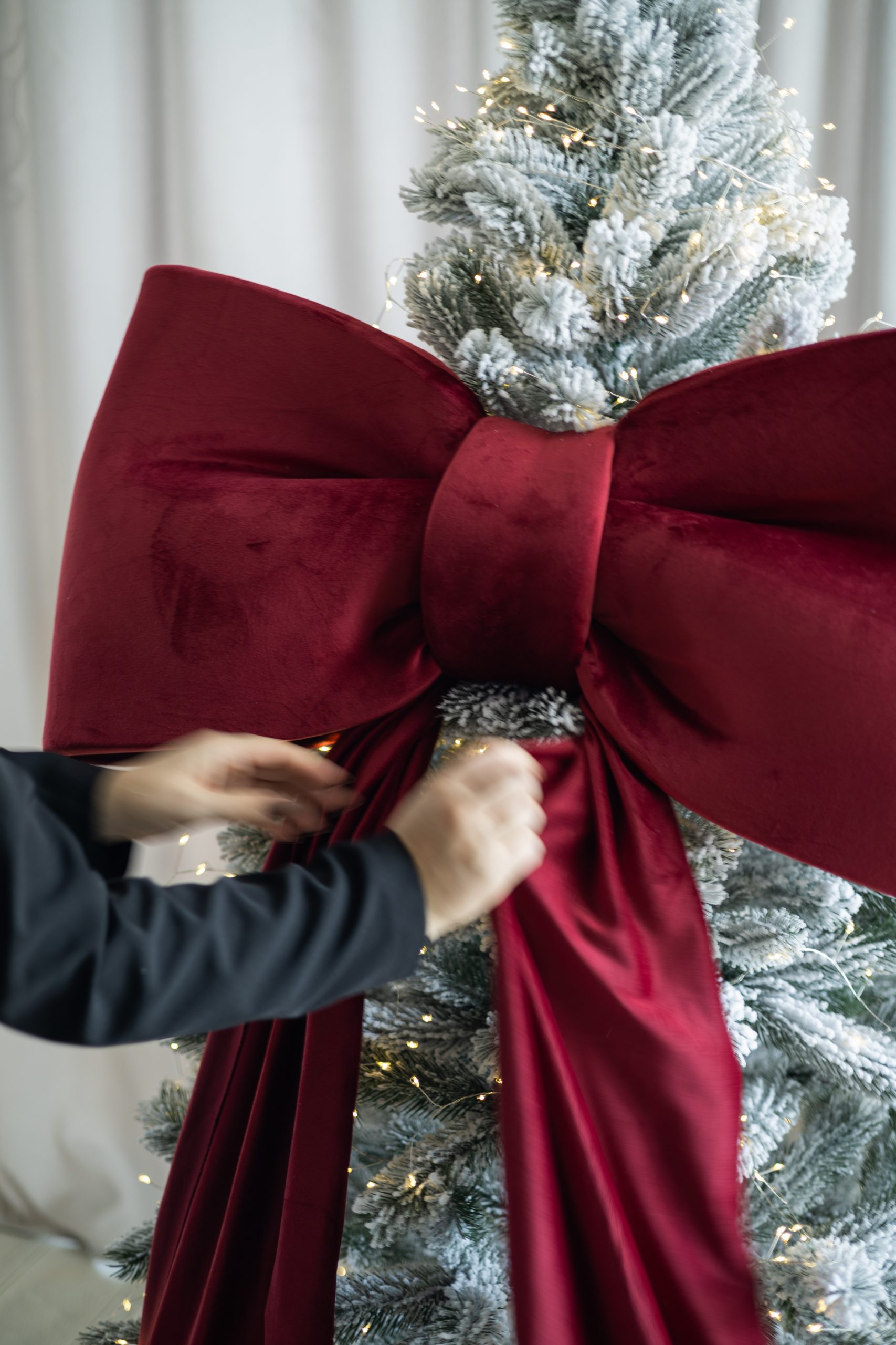✨ Виготовлений із м’якого велюру, бант виглядає розкішно та приємно на дотик. Його насичена червона або ніжна біла палітра гармонійно поєднується з будь-якими іграшками, гірляндами та декором.
