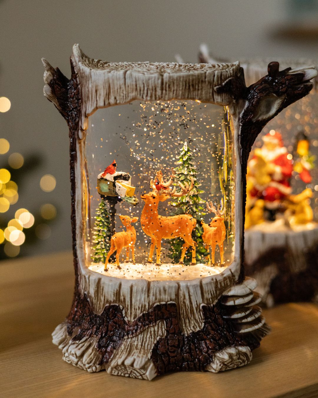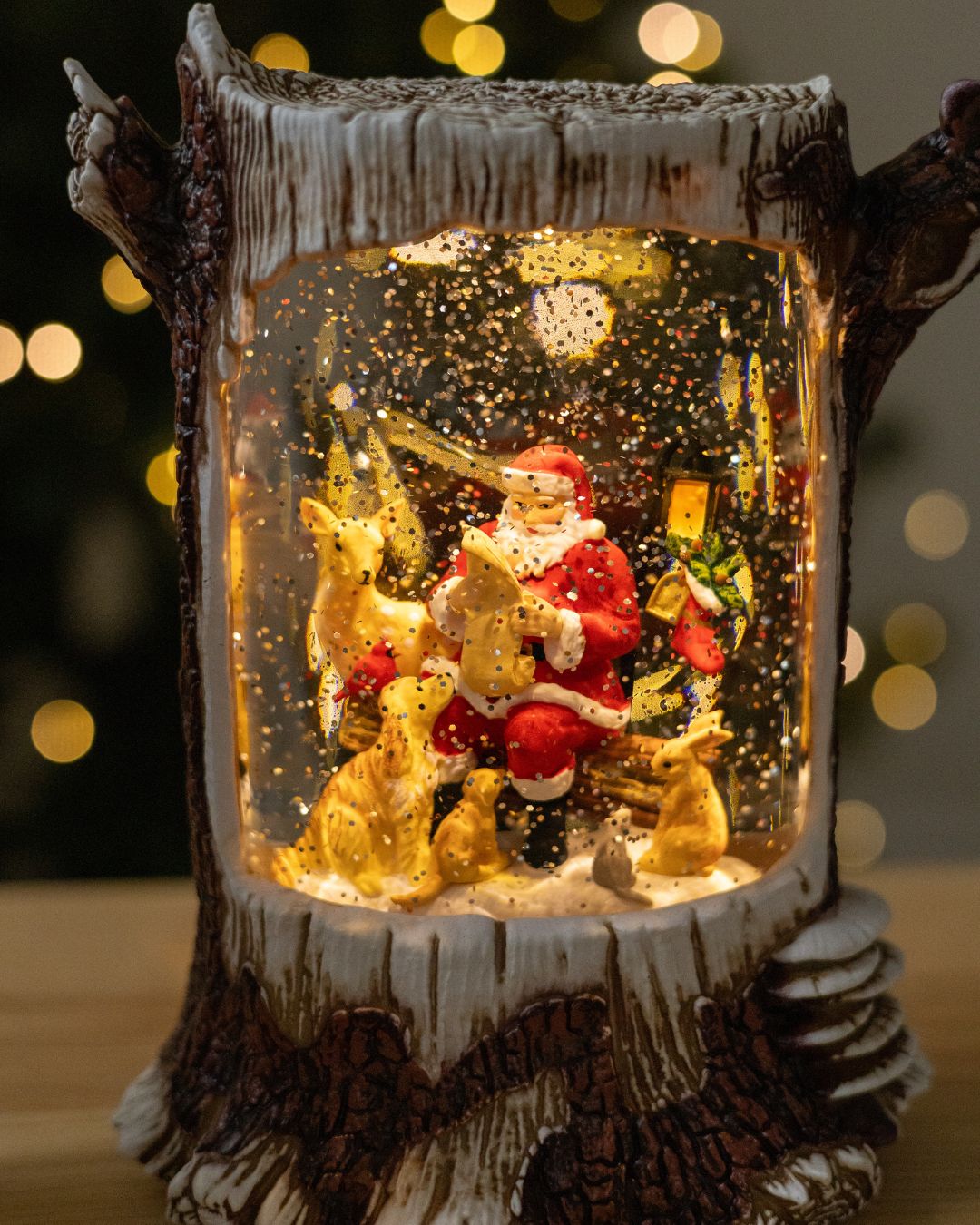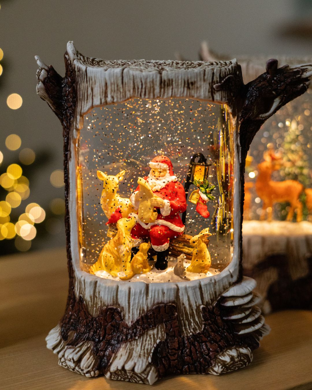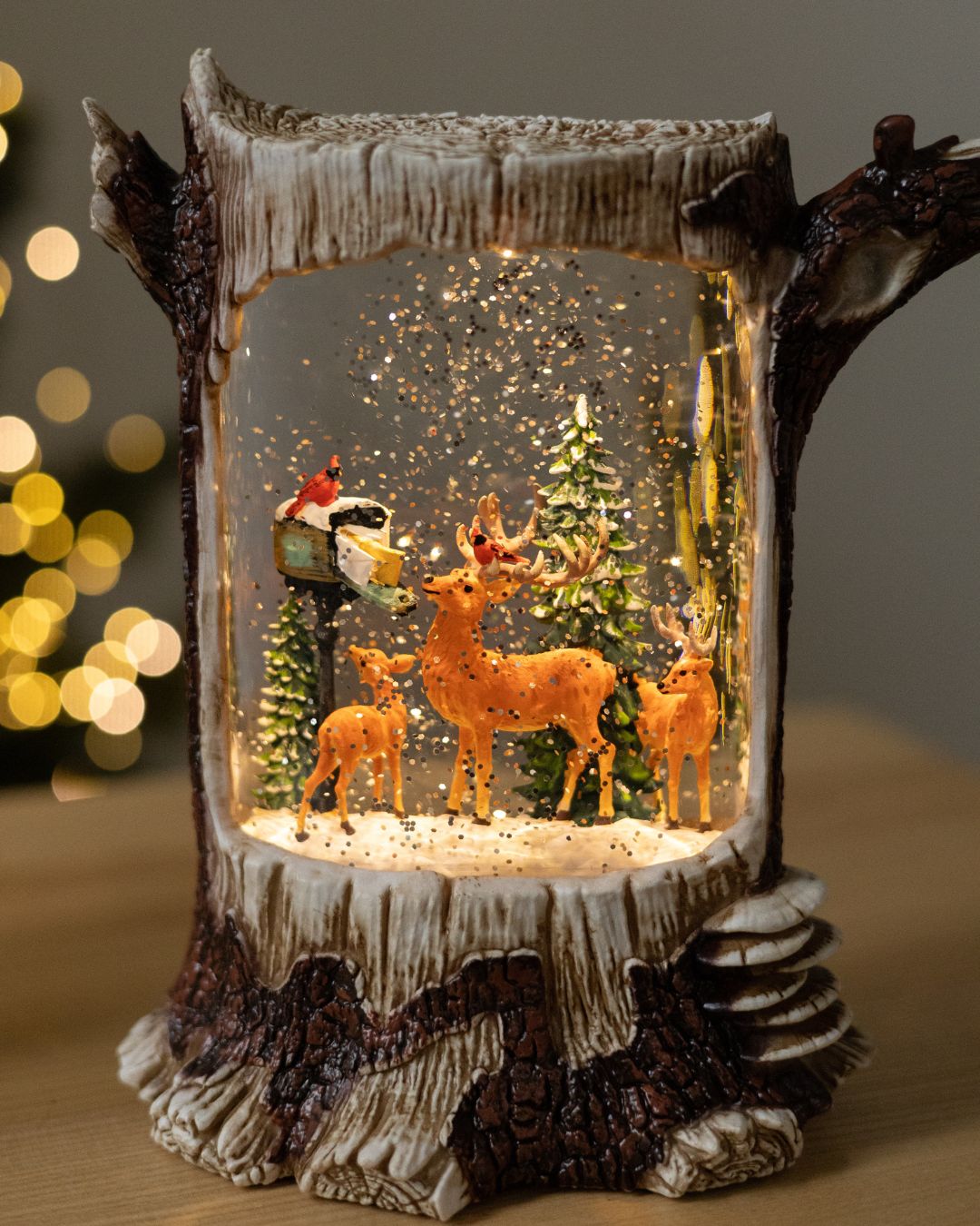 ✨ Новорічний ліхтар “Лісова казка” вражає своєю реалістичністю та затишною атмосферою. Дизайн ліхтаря виконаний у біло-коричневих тонах і максимально нагадує справжній дерев’яний пеньок, з гілочками, що органічно виходять з нього, створюючи відчуття зимового лісу. Усередині ліхтар оживають казкові сцени, що наповнює простір теплом і святковим настроєм.