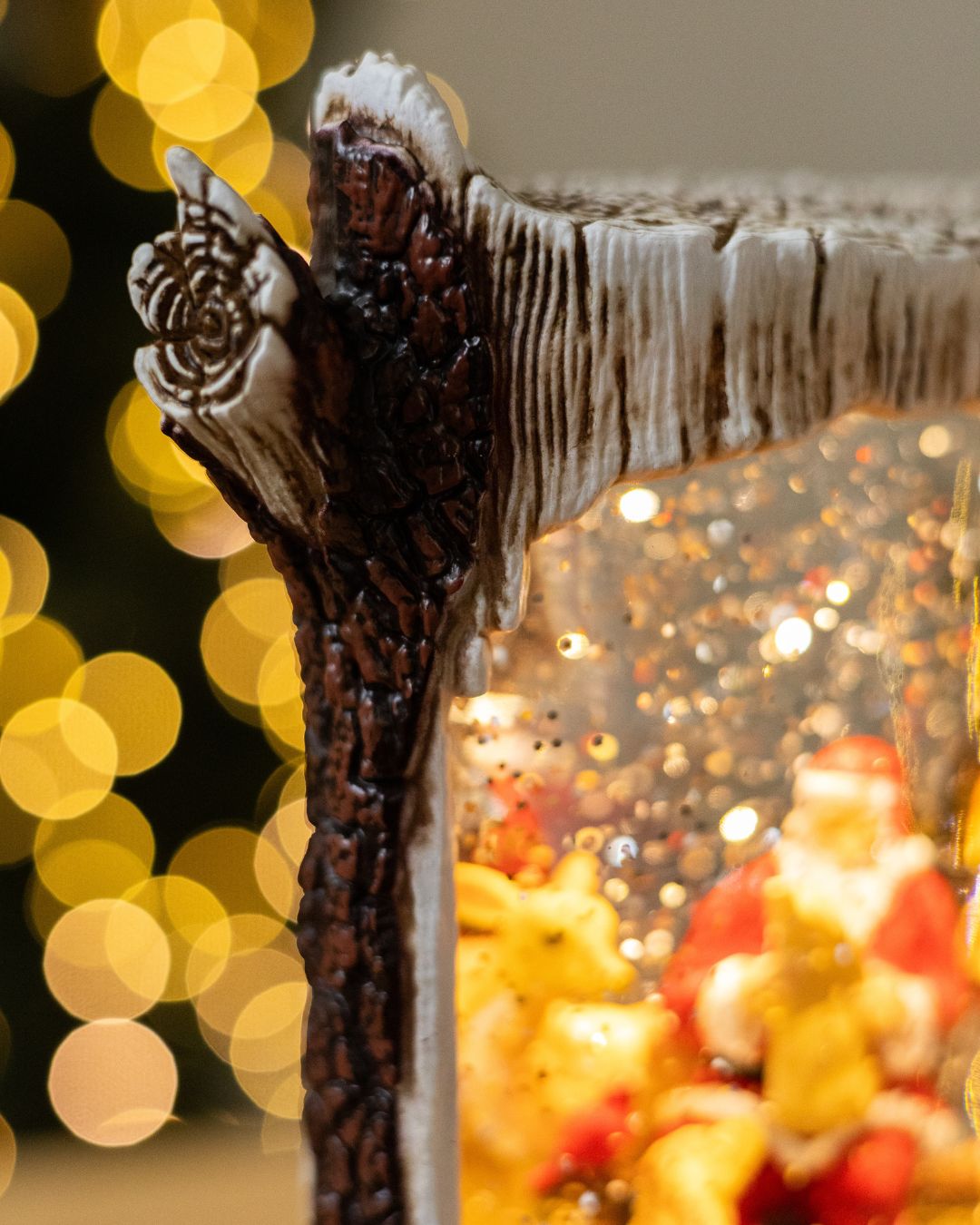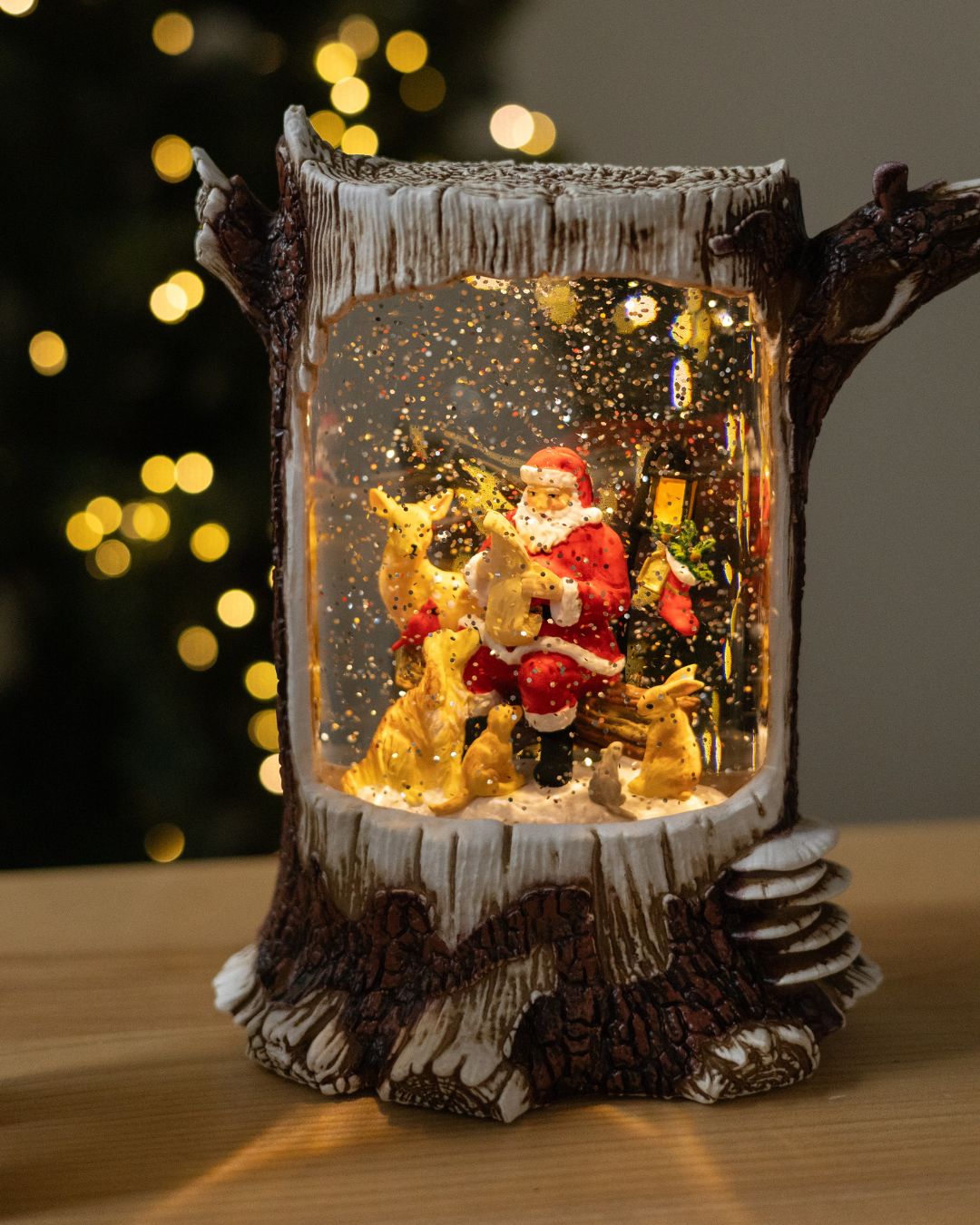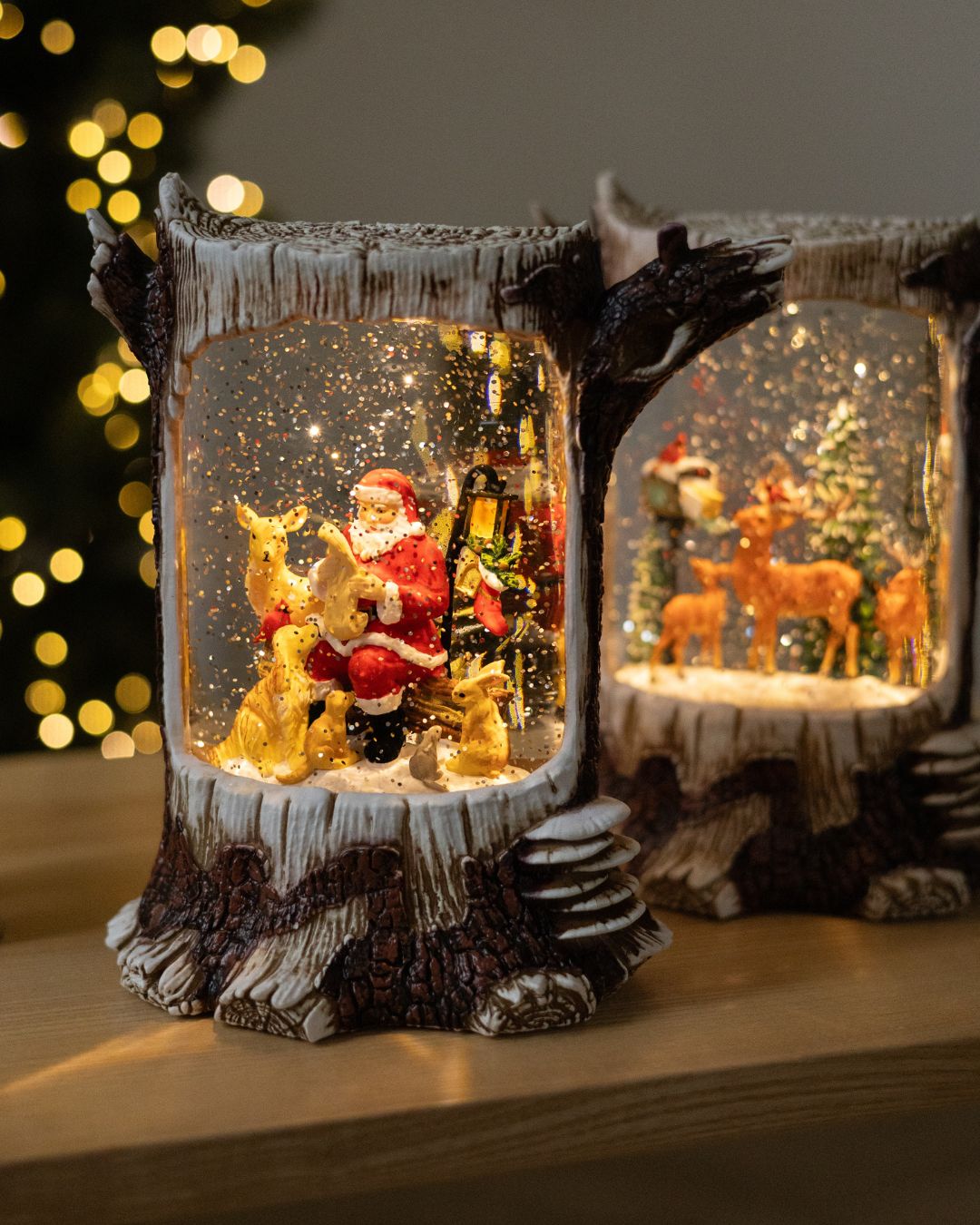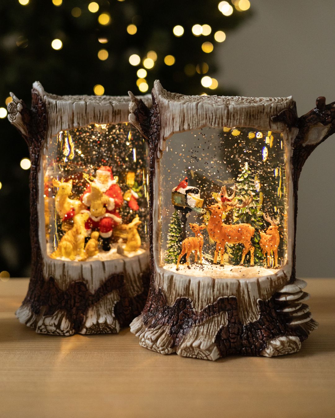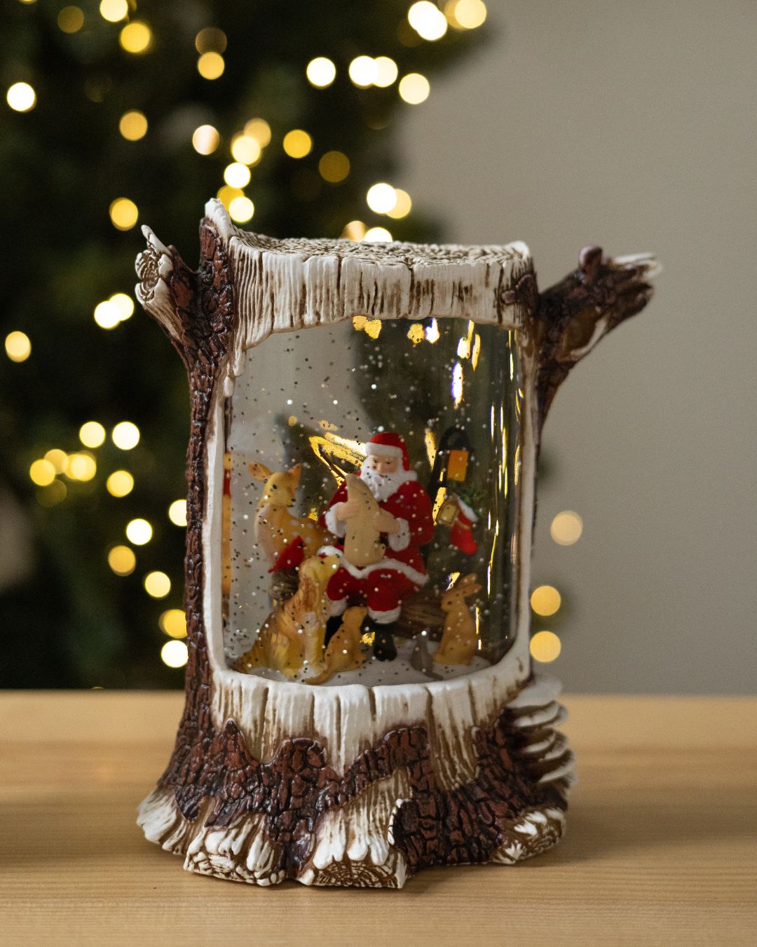 ✨ Новорічний ліхтар “Лісова казка” вражає своєю реалістичністю та затишною атмосферою. Дизайн ліхтаря виконаний у біло-коричневих тонах і максимально нагадує справжній дерев’яний пеньок, з гілочками, що органічно виходять з нього, створюючи відчуття зимового лісу. Усередині ліхтар оживають казкові сцени, що наповнює простір теплом і святковим настроєм.