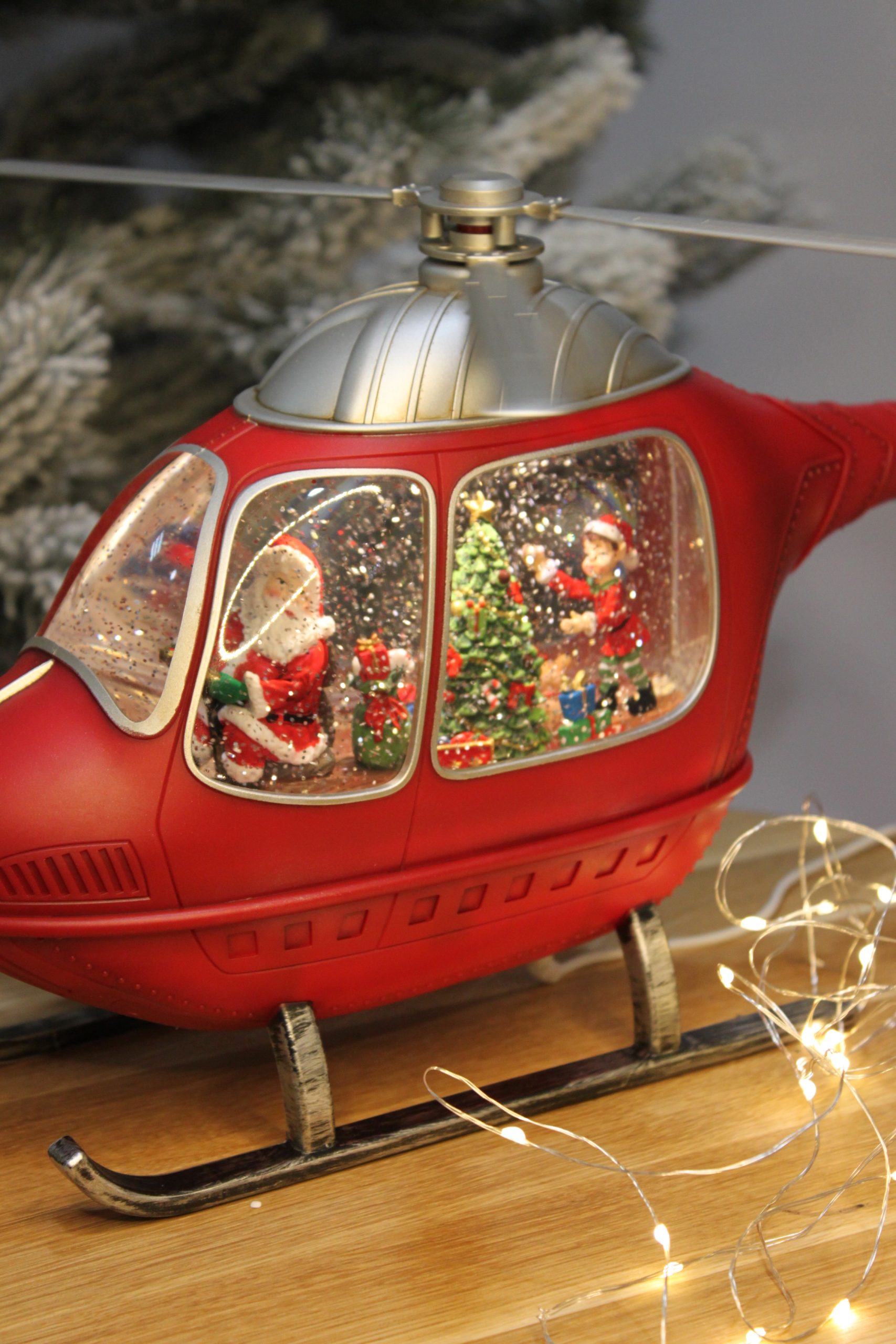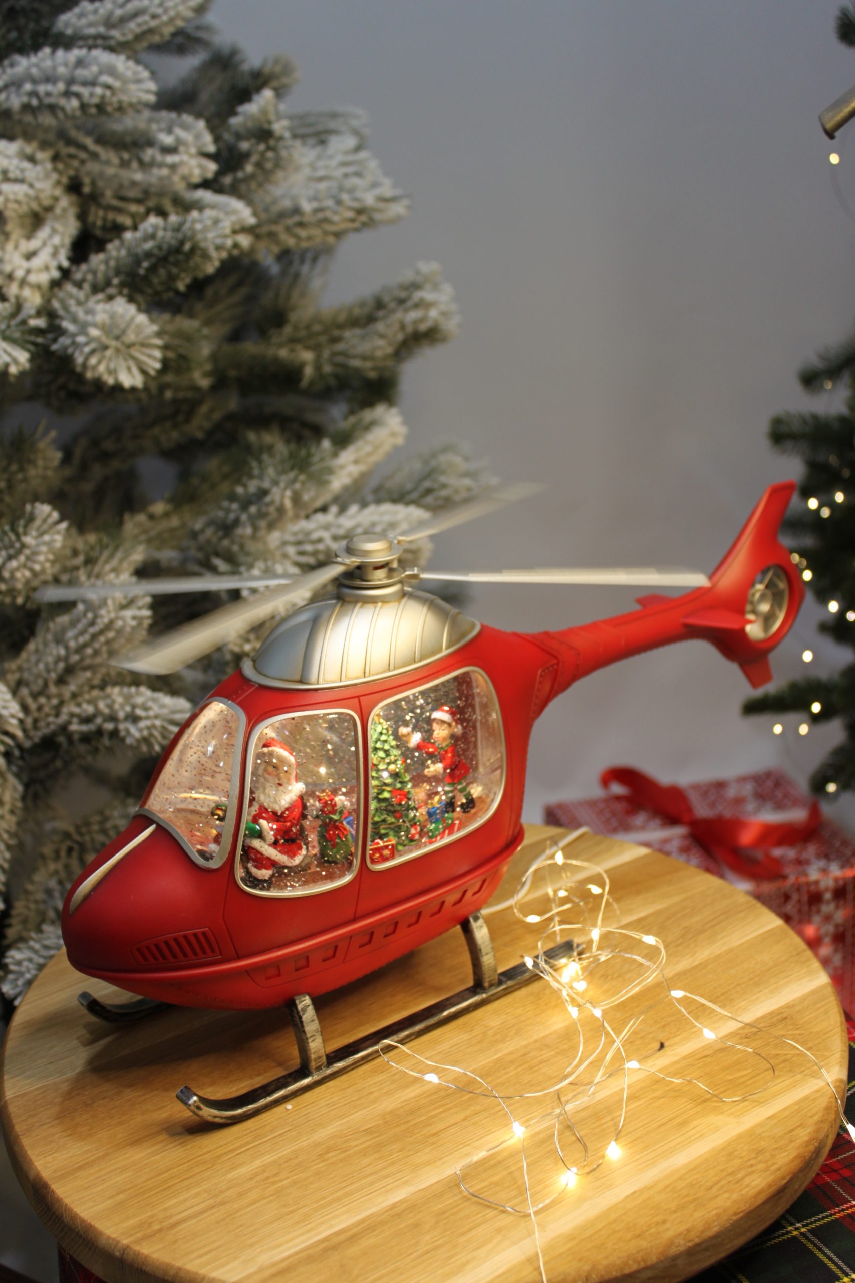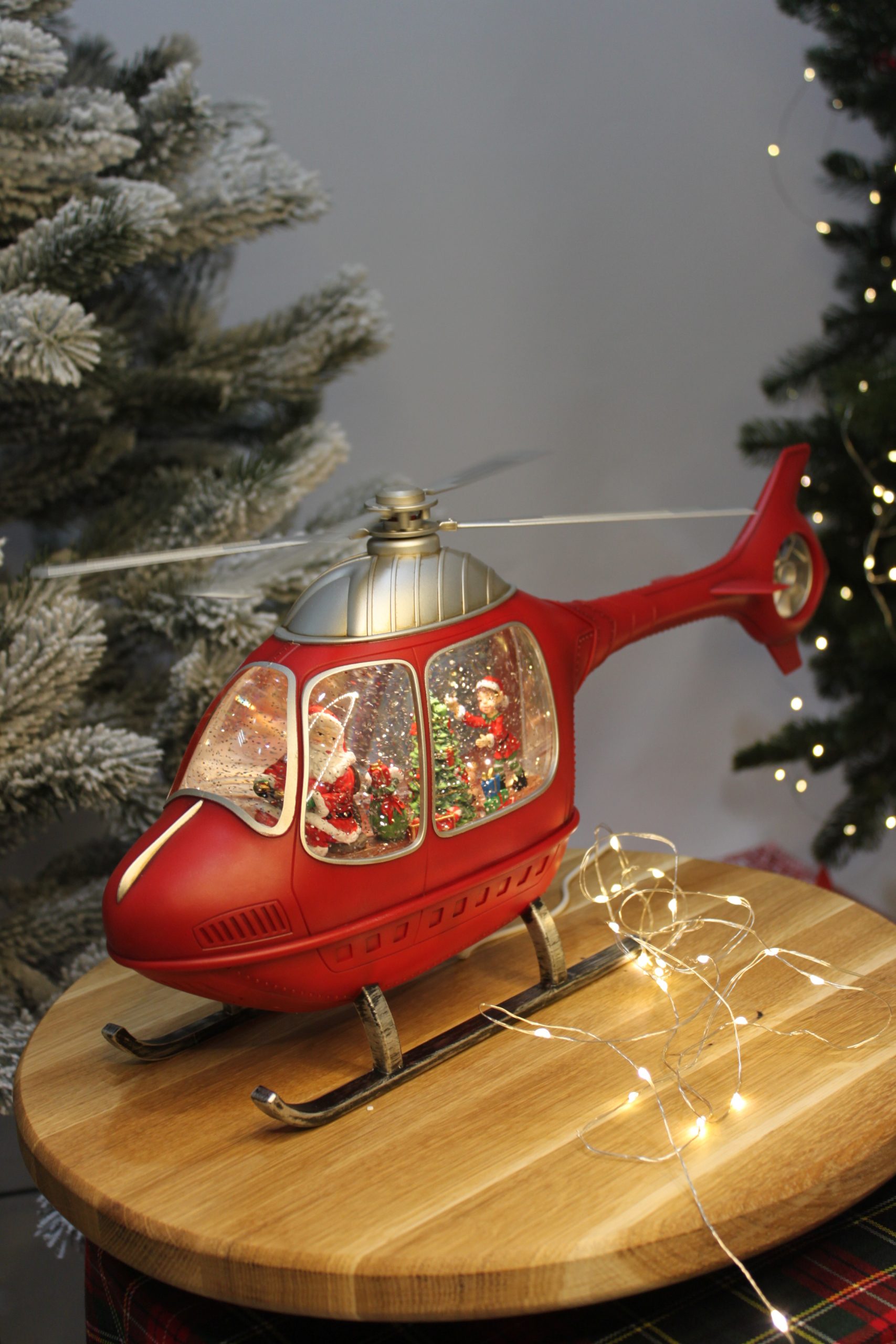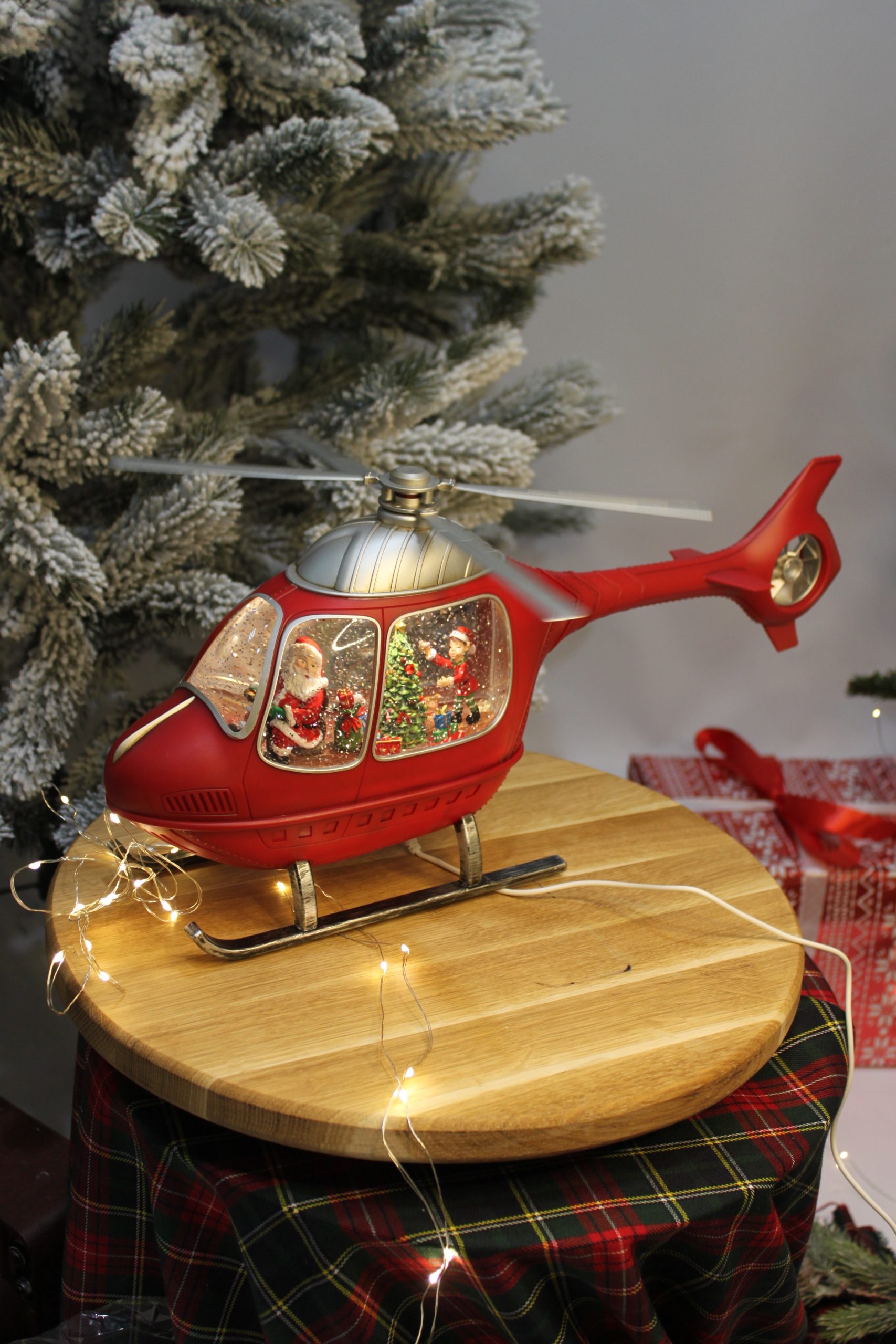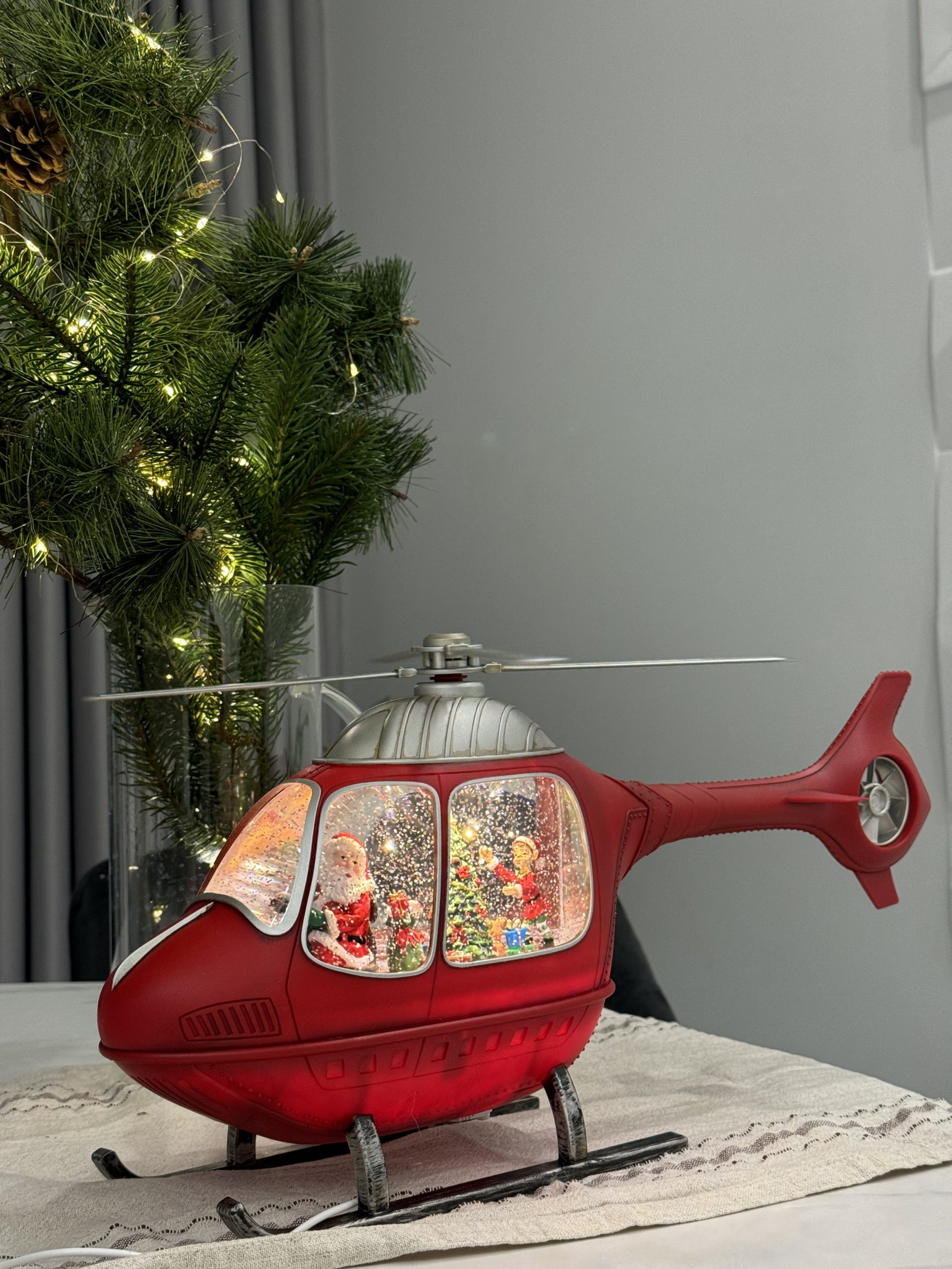 Вертоліт має чарівний сюжет: “Санта в ролі пілота, ельф прикрашає ялинку”. Картину доповнють святкові подарунки, ведмедик та мішок з подарунками. В ліхтарі – крутиться лопать зверху та ялинка всередині, що заворожує погляд та створює неймовірний ефект.