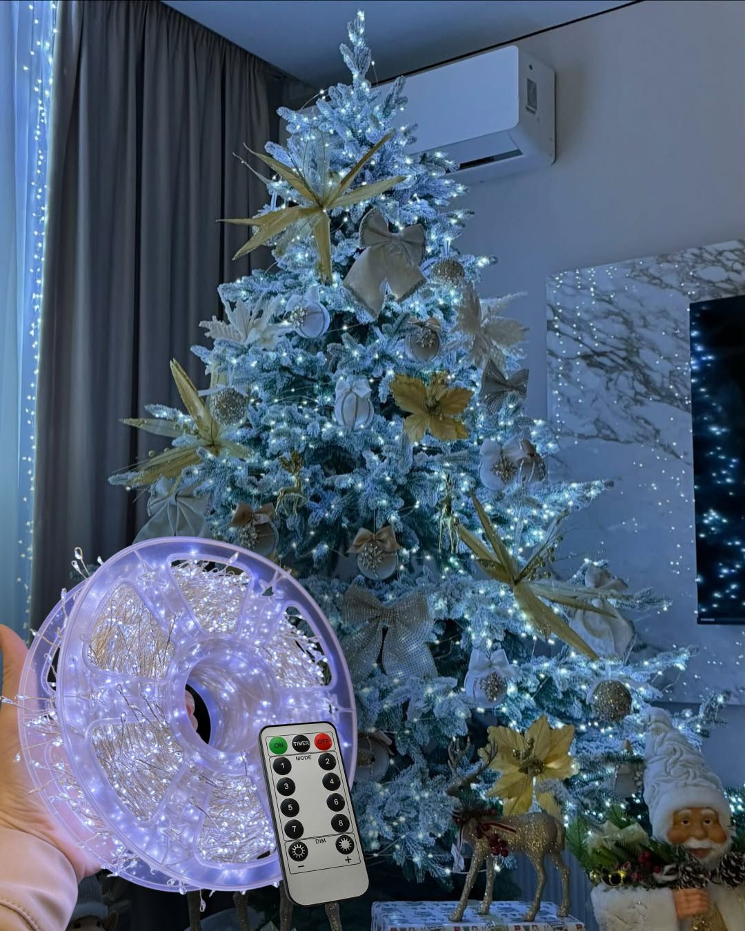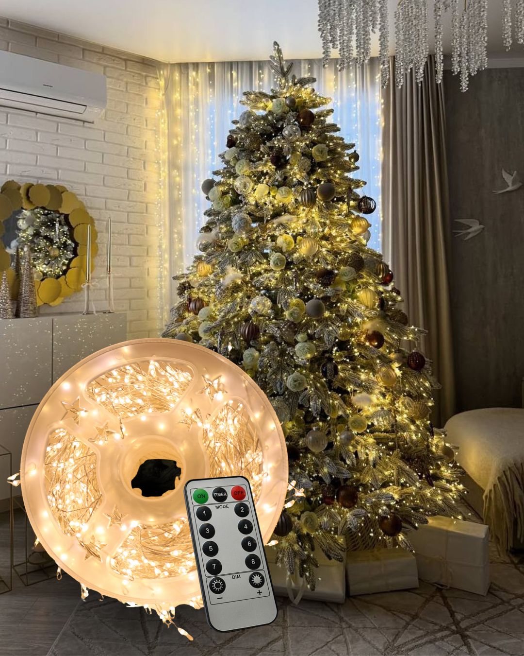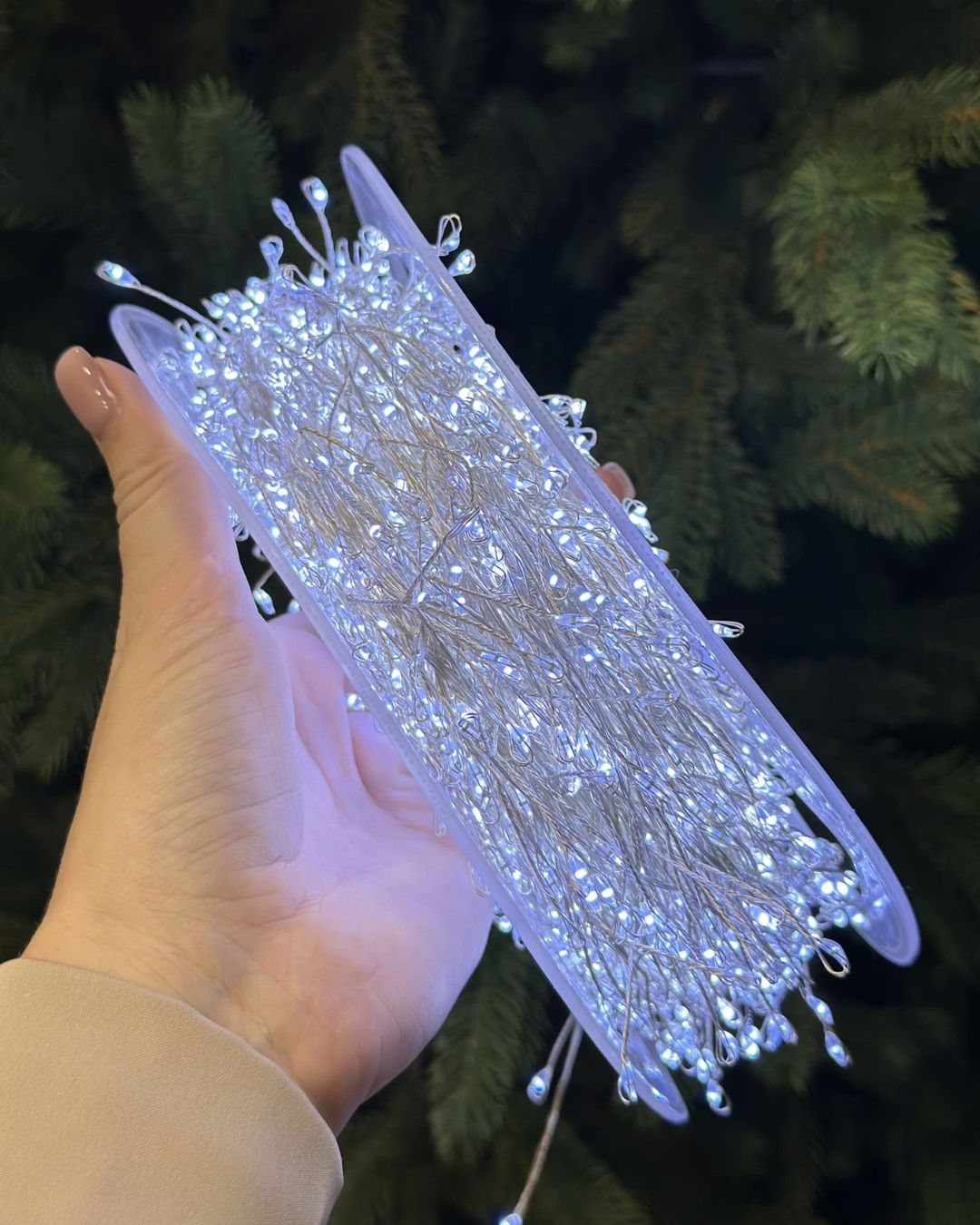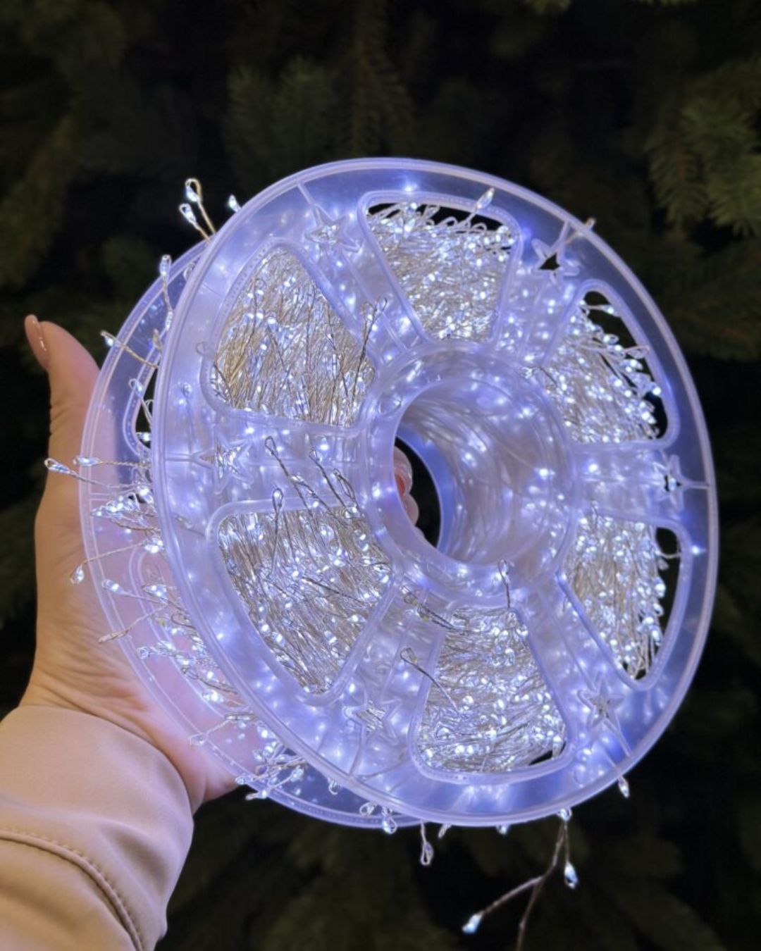 100 метрів сяйва та 3000 теплих вогників створюють святкову магію. Завдяки тонкому срібному дроту та мініатюрним діодам гірлянда виглядає неймовірно ніжно та водночас яскраво. Коли вогники загораються – Ваша ялинка миттєво засяє, наповнюючи дім атмосферою затишку та новорічного настрою.