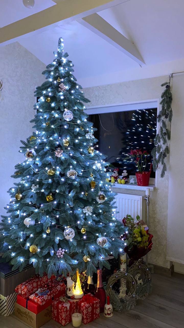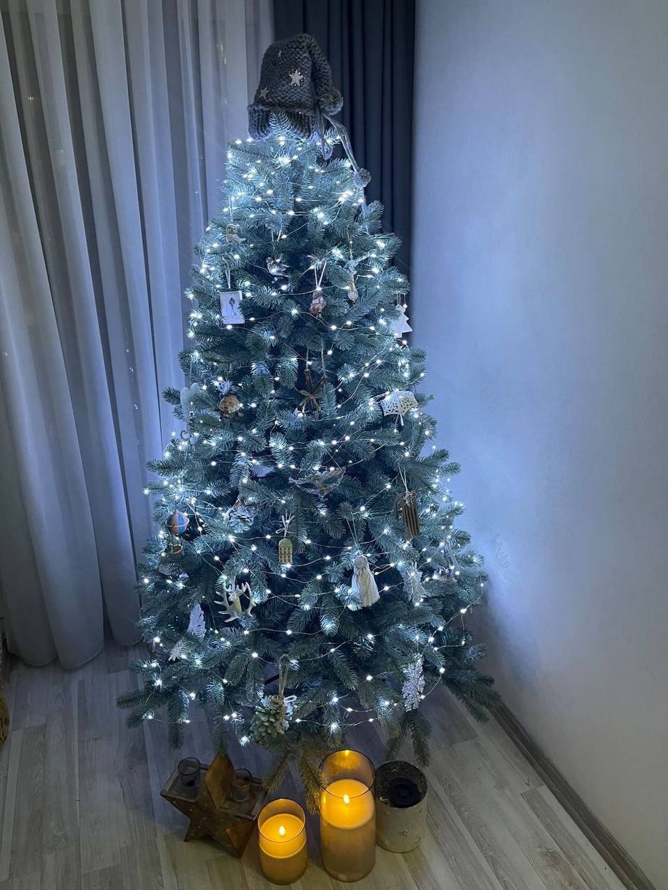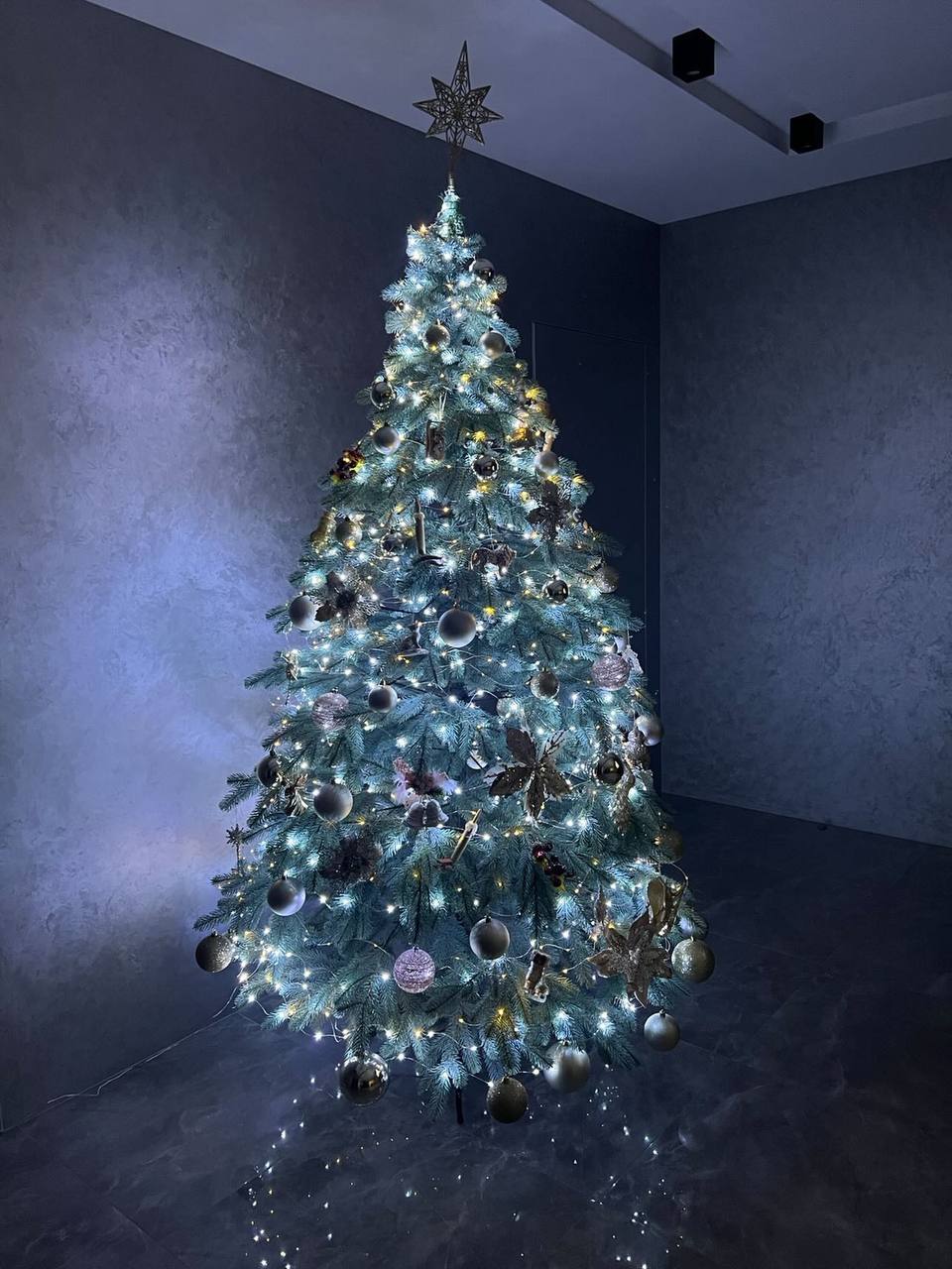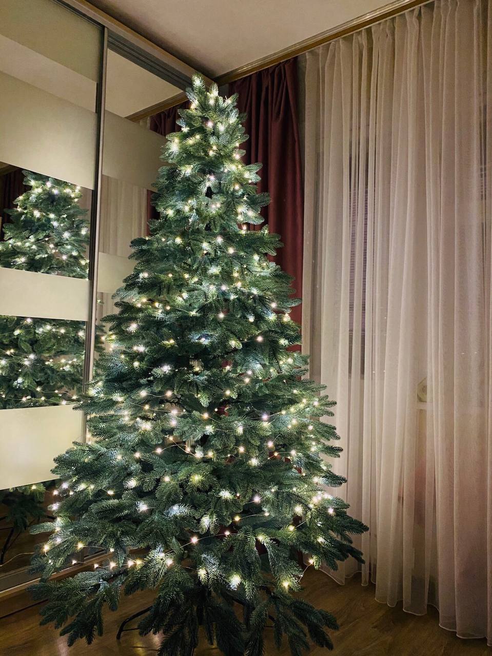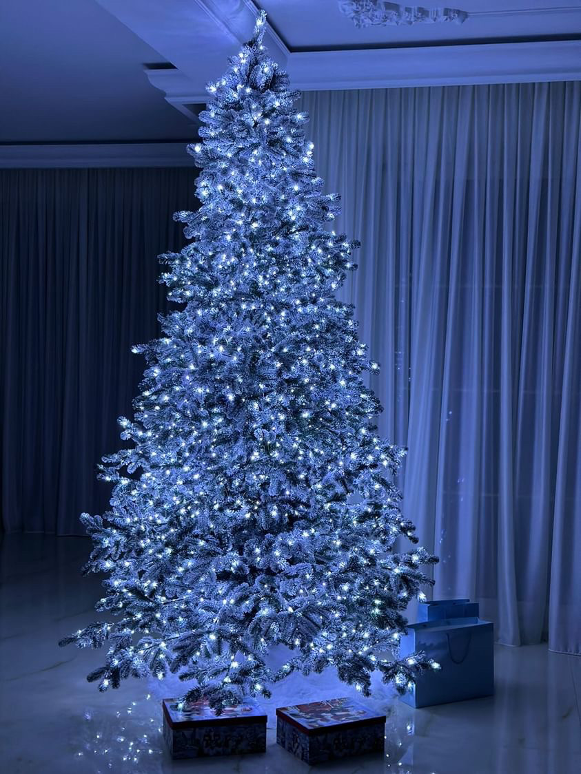 Світлодіоди мають яскраве сяйво, при цьому споживають мінімум електроенергії та не нагріваються. Мініатюрний срібний дріт майже непомітний на ялинці, завдяки чому створюється чарівний ефект ніби паруючих у повітрі вогників.