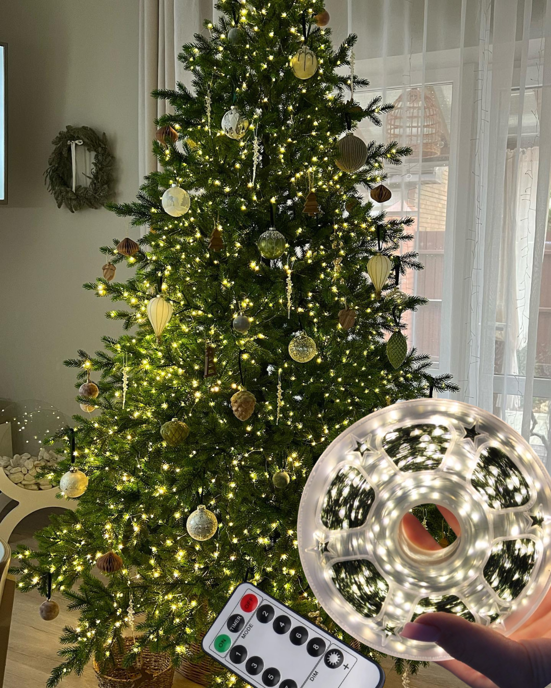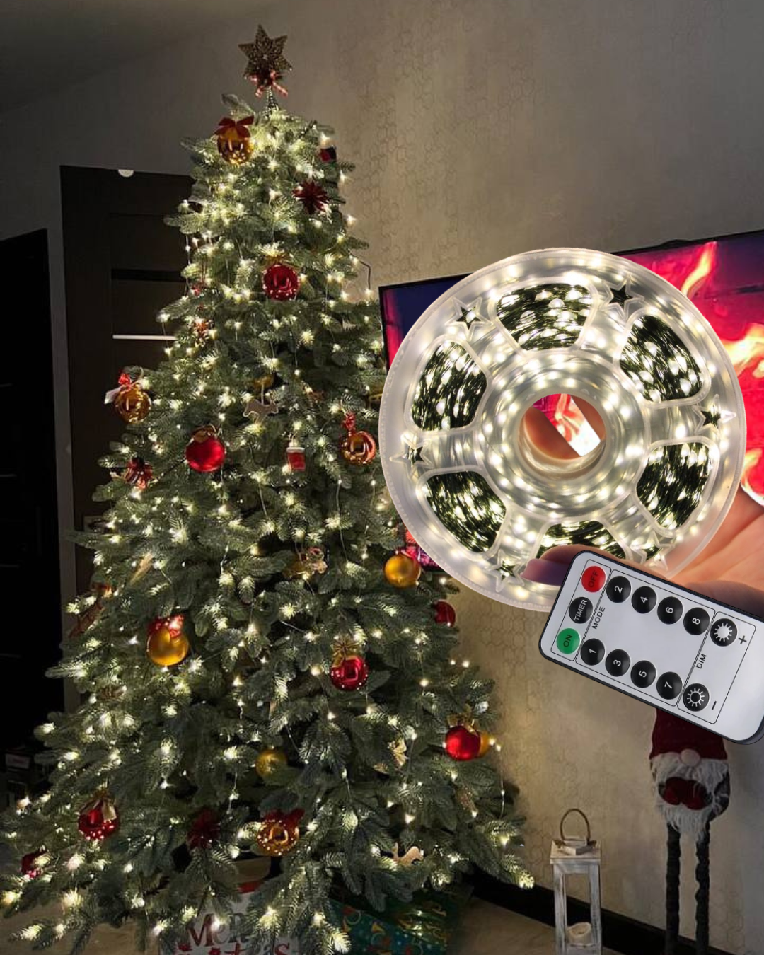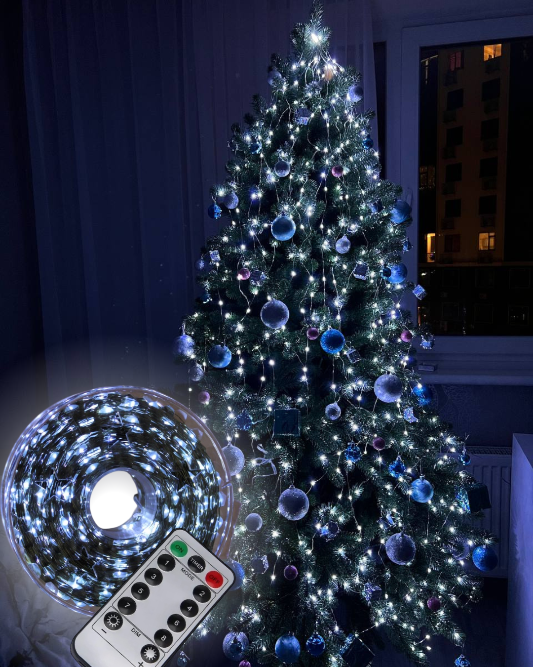 💫 Тонкий дріт гірлянди майже непомітний, тож сяючі “краплі роси” створюють чарівний ефект. Срібний дріт ідеально пасує до штучних або білих ялинок, а зелений — гармонійно зливається з живими хвойними гілками.