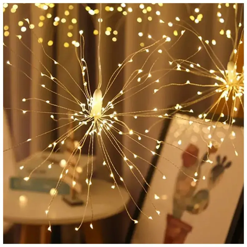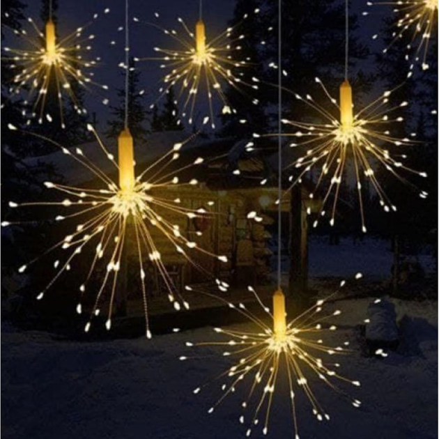 🎆 Гірлянда “Феєрверк” — це яскравий акцент, який перетворить будь-який простір на справжнє свято! Вона складається з 5 феєрверків — розгалужених мідних дротів із мініатюрними світлодіодами, що створюють ефект сяючого вибуху світла.