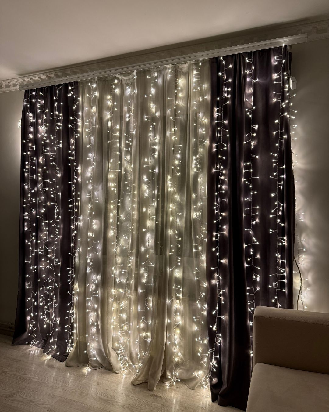💡 Завдяки вражаючій кількості лампочок — до 2400 LED, — гірлянда заповнює кімнату теплим сяйвом, огортає все навколо ніжним блиском і миттєво створює атмосферу затишку та свята.