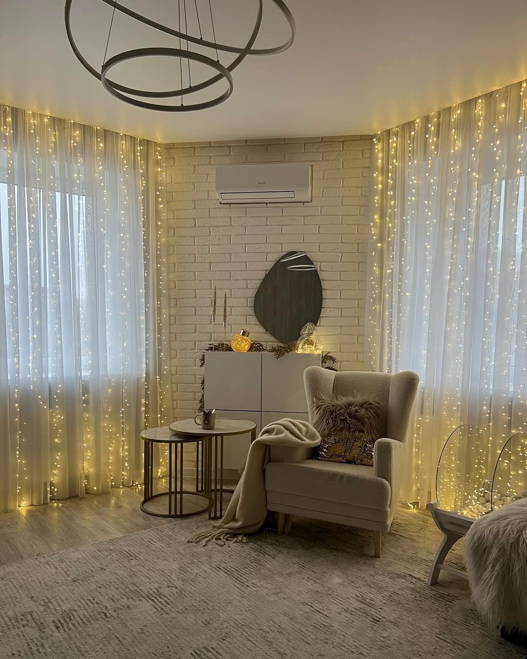🎉 Використовуйте “Штору з гілочок роси”, щоб перетворити свій простір на справжню казку — від затишної вечері вдома до яскравої новорічної інсталяції.