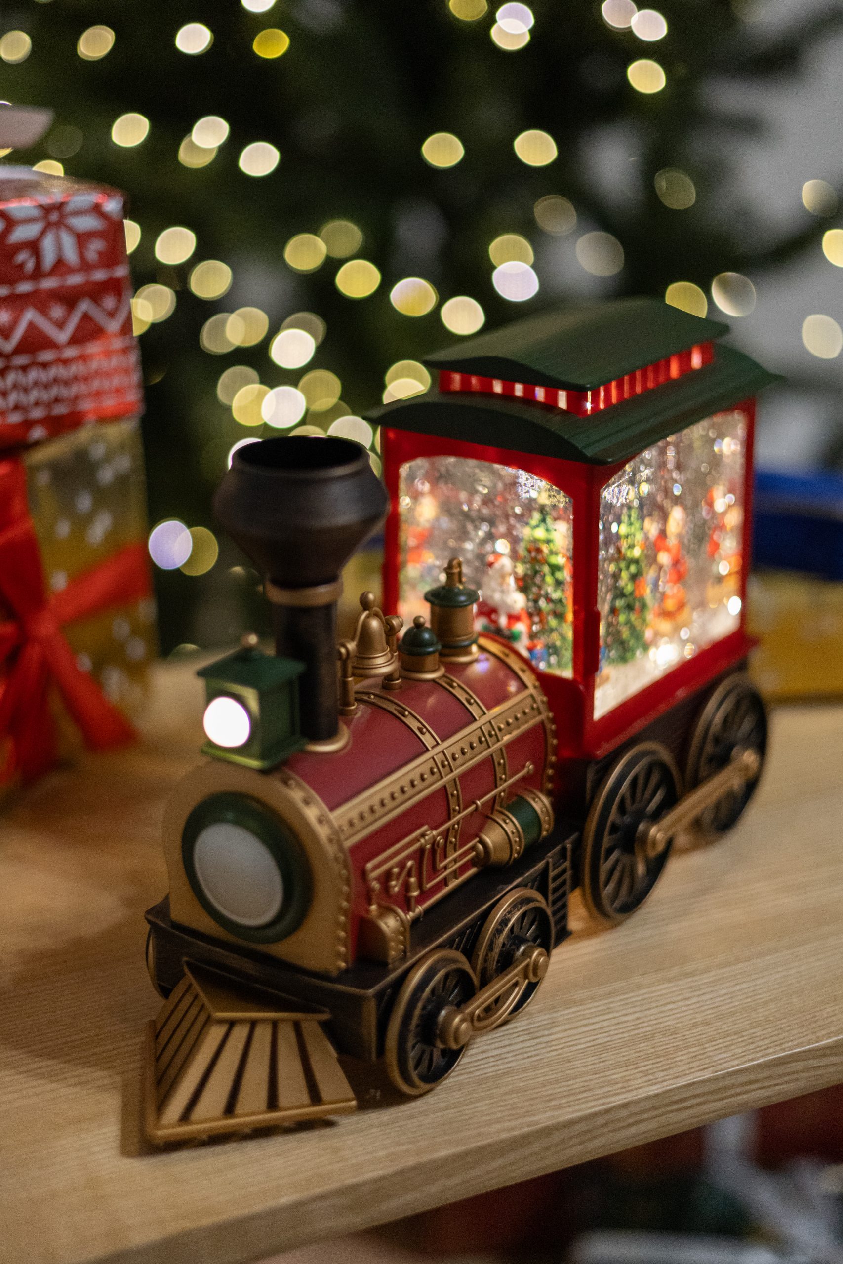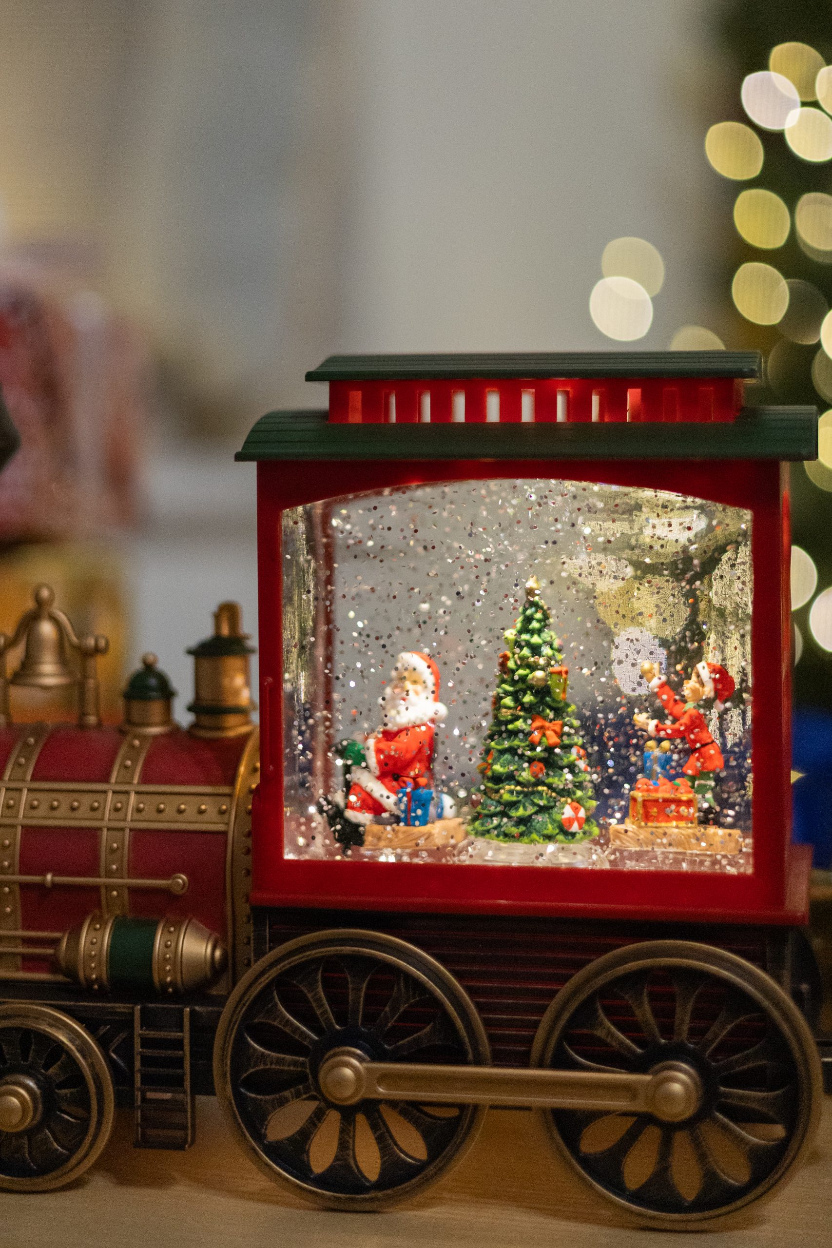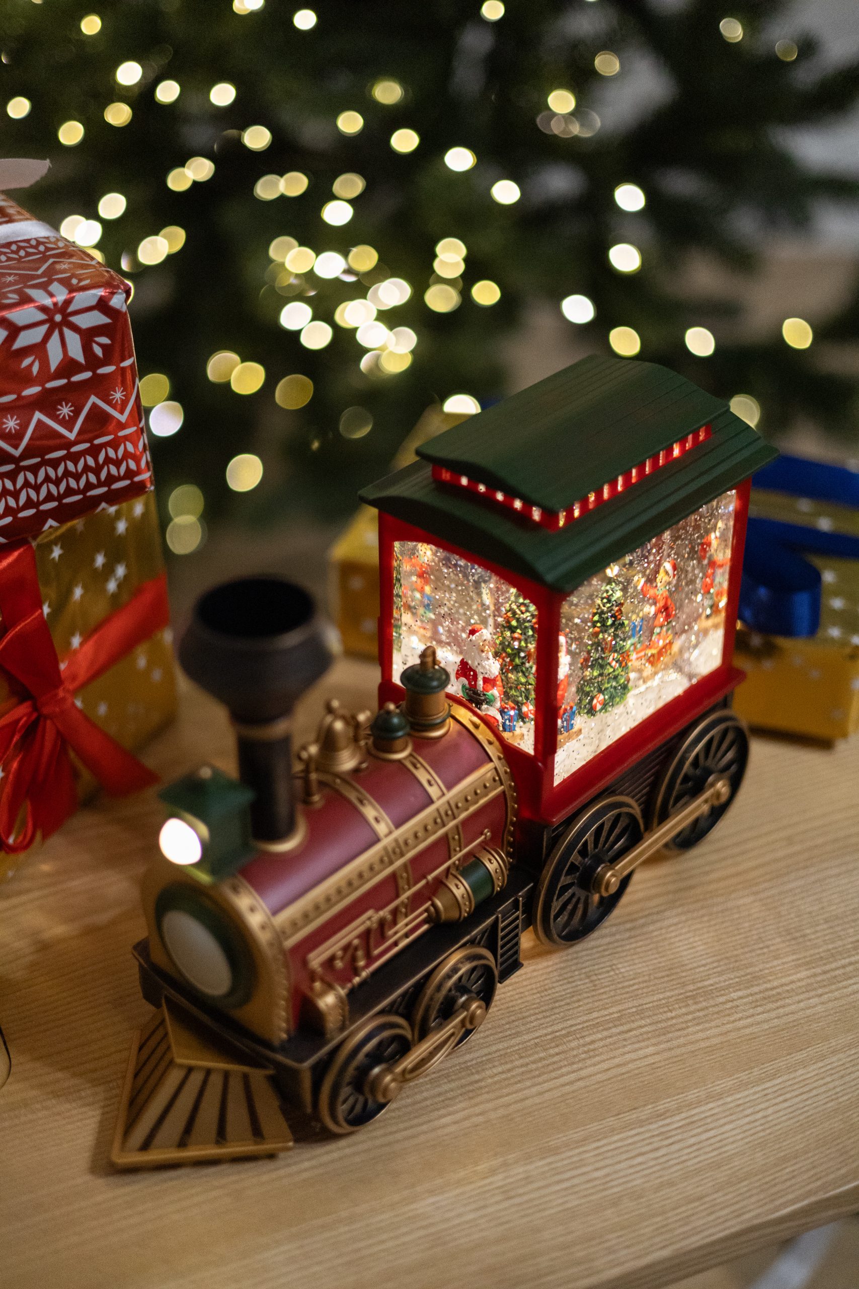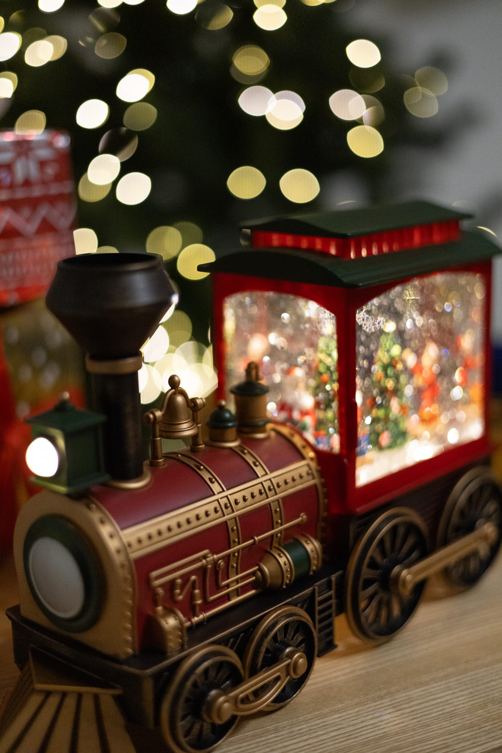 ✨Потяг має чарівний сюжет: “Санта за кермом потяга, ельф прикрашає ялинку”. Картину доповнють святкові подарунки та мішок з подарунками. В ліхтарі – крутиться ялинка всередині, що заворожує погляд та створює неймовірний ефект.