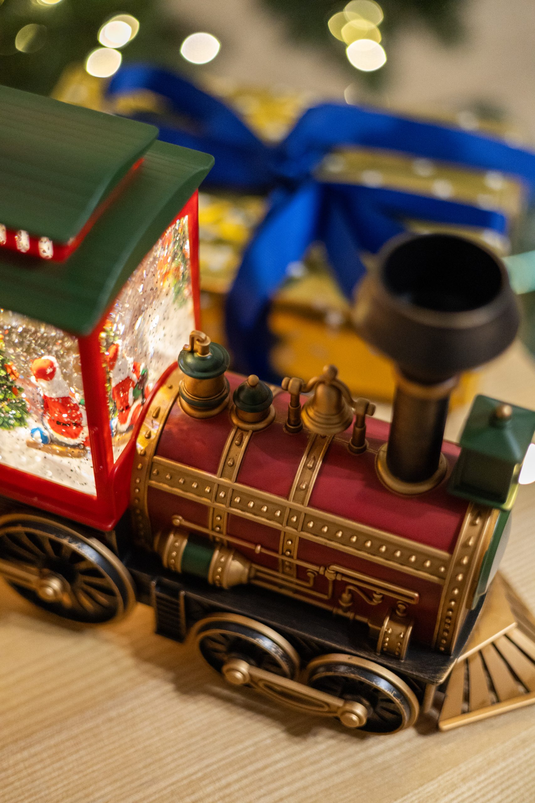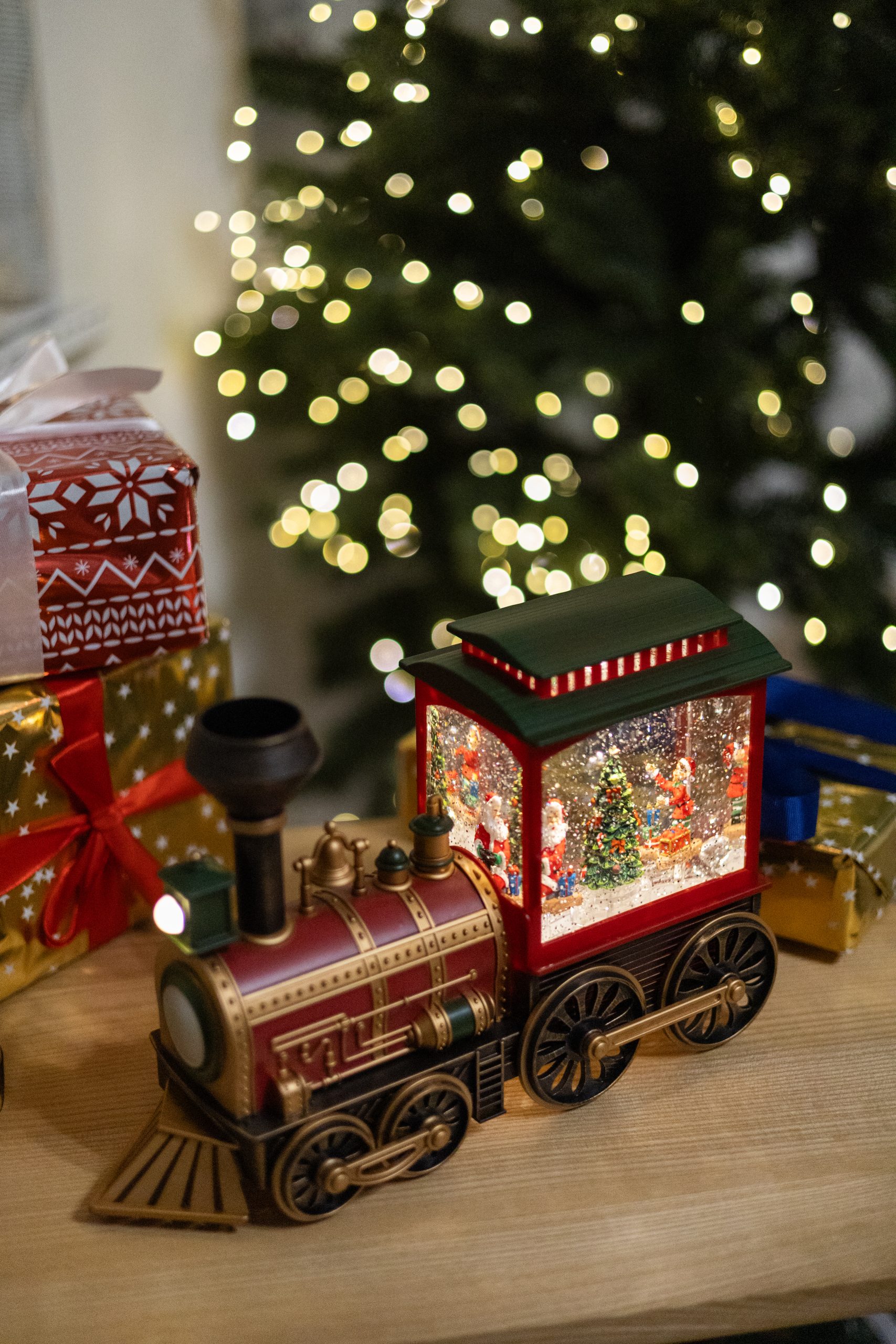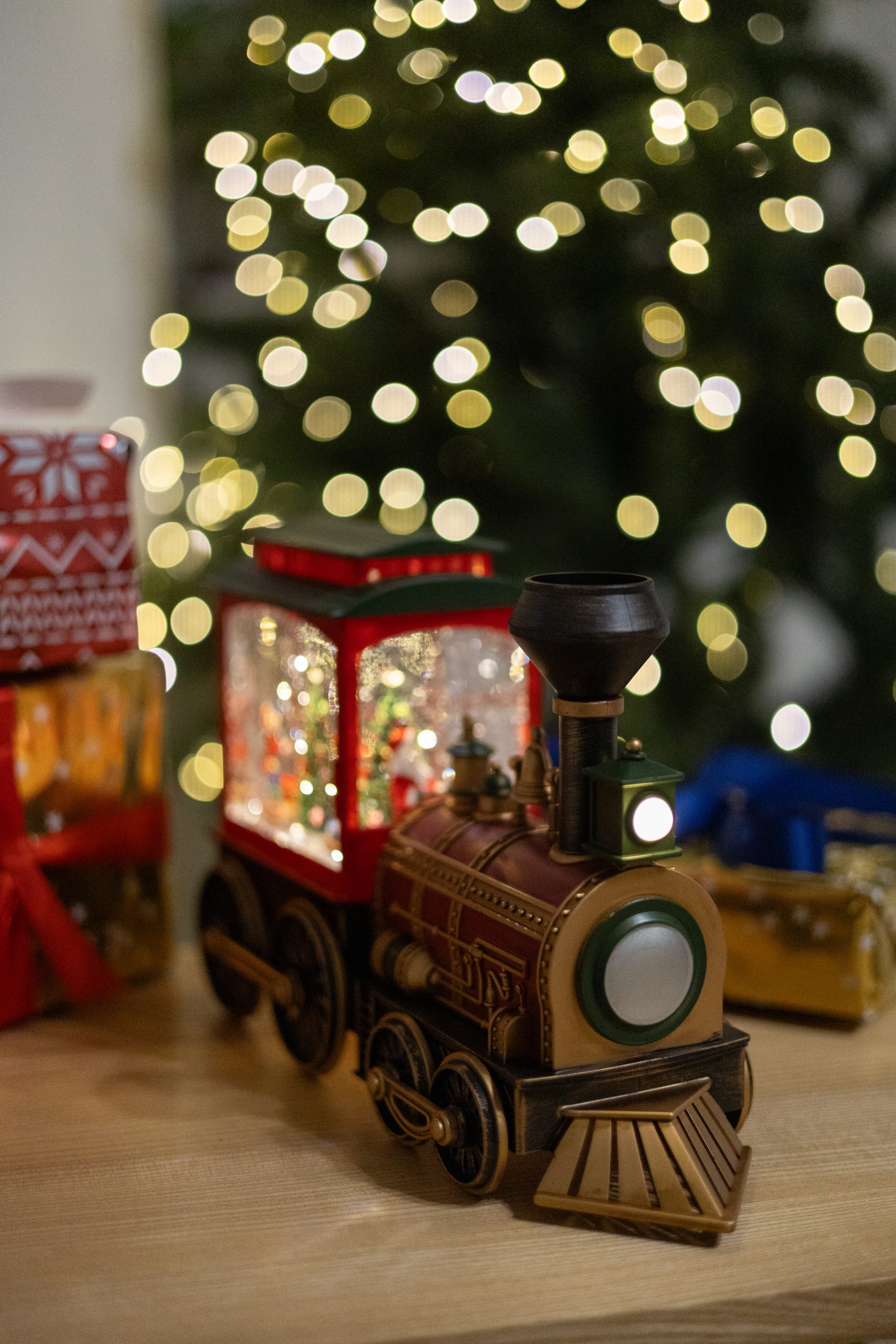✨Потяг має чарівний сюжет: “Санта за кермом потяга, ельф прикрашає ялинку”. Картину доповнють святкові подарунки та мішок з подарунками. В ліхтарі – крутиться ялинка всередині, що заворожує погляд та створює неймовірний ефект.