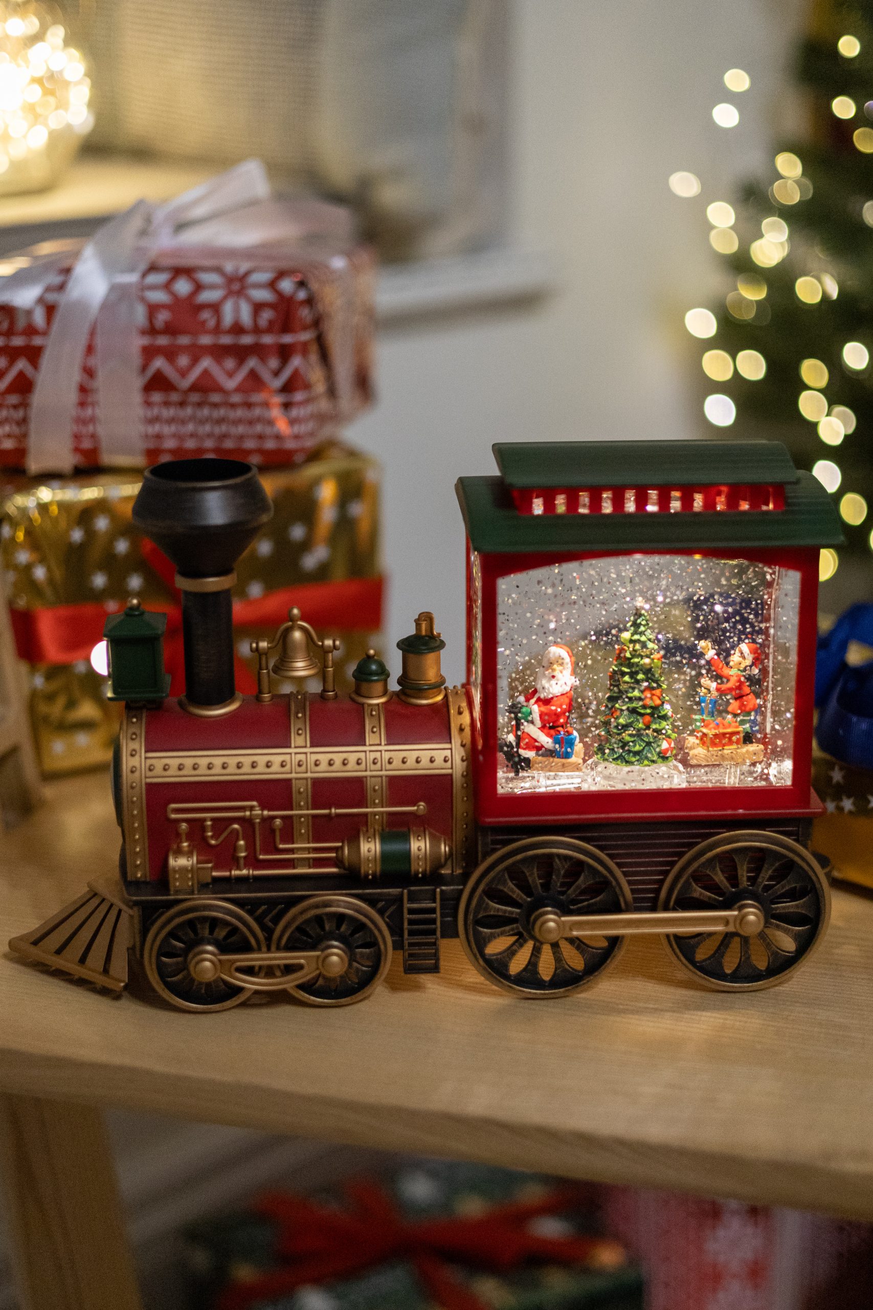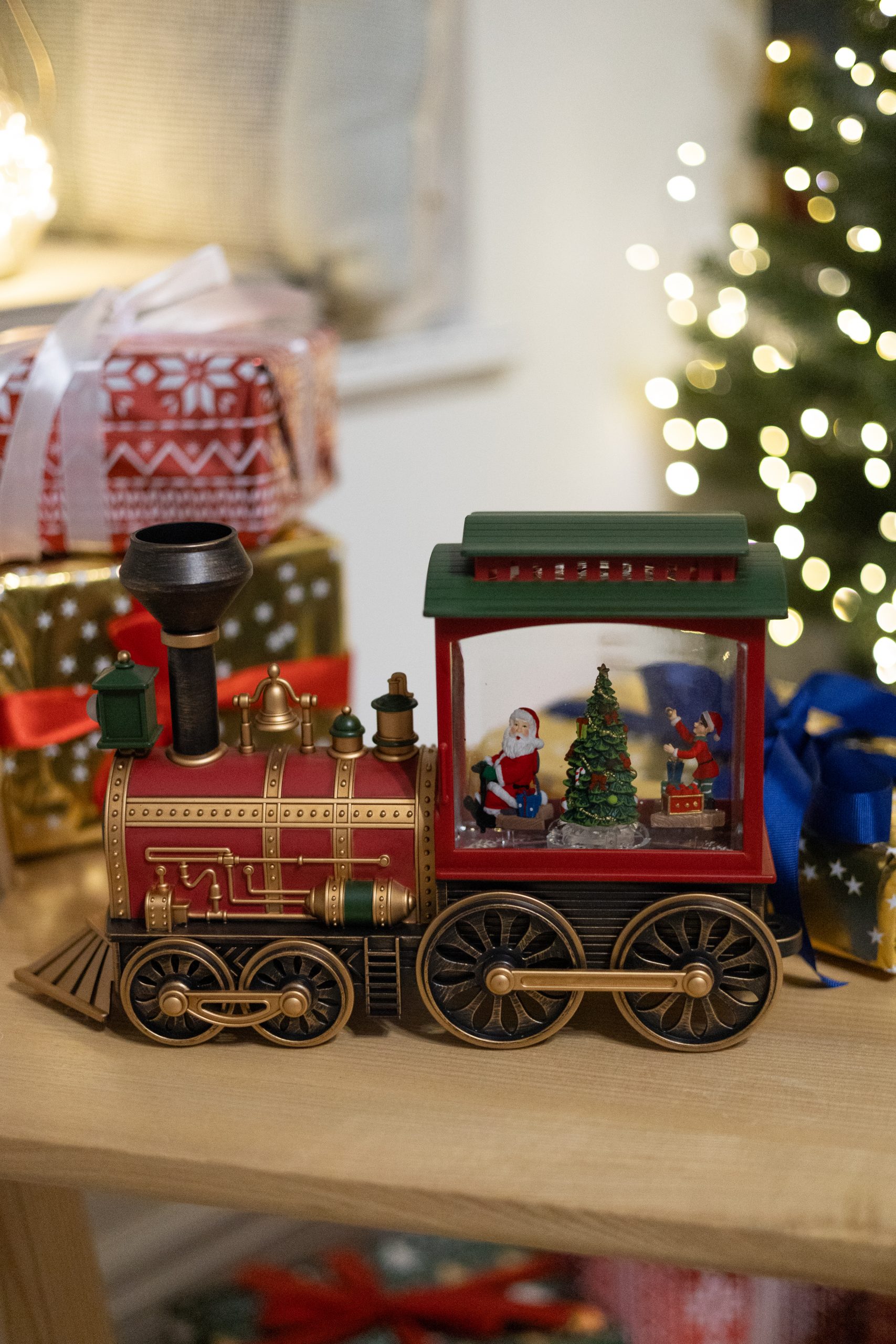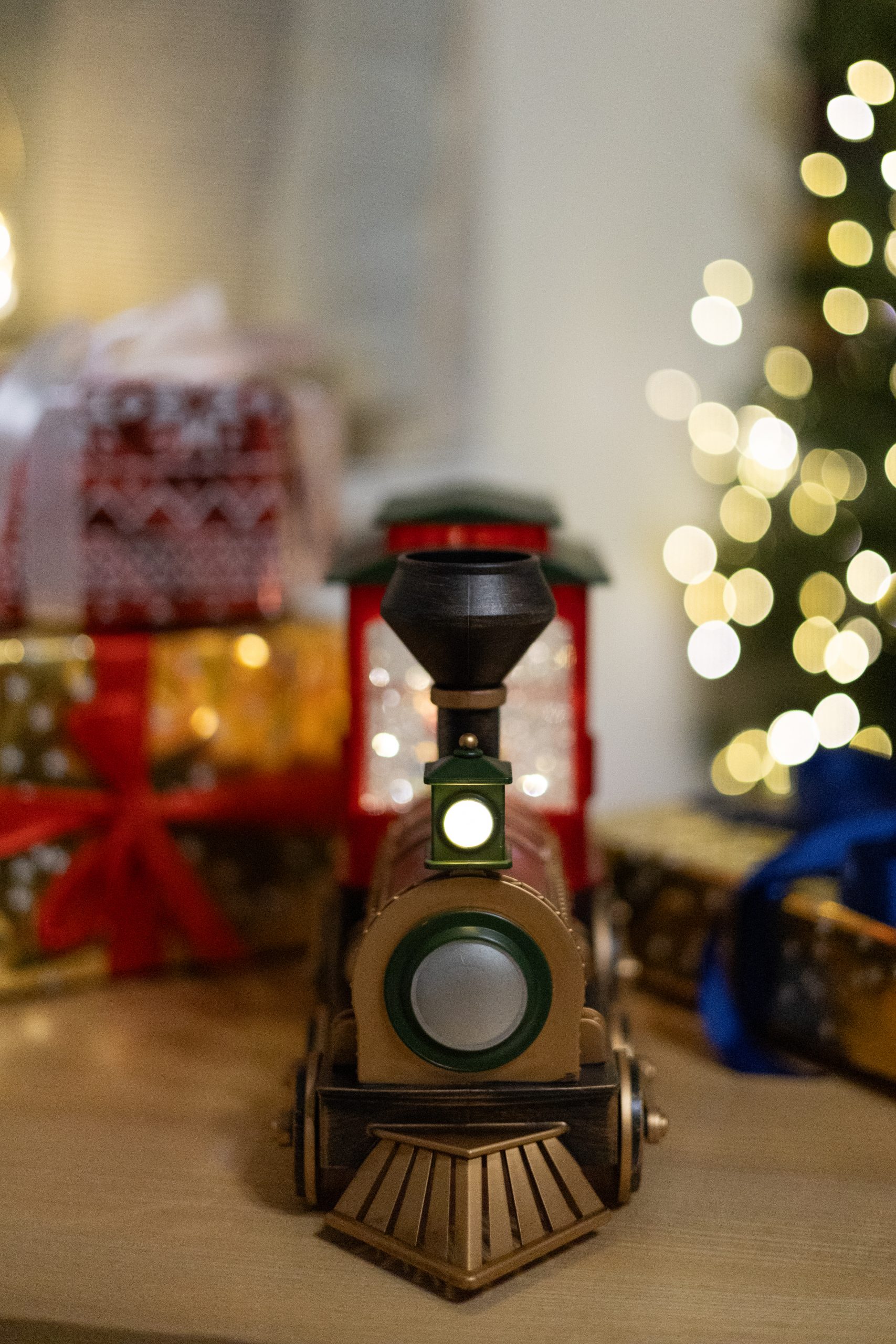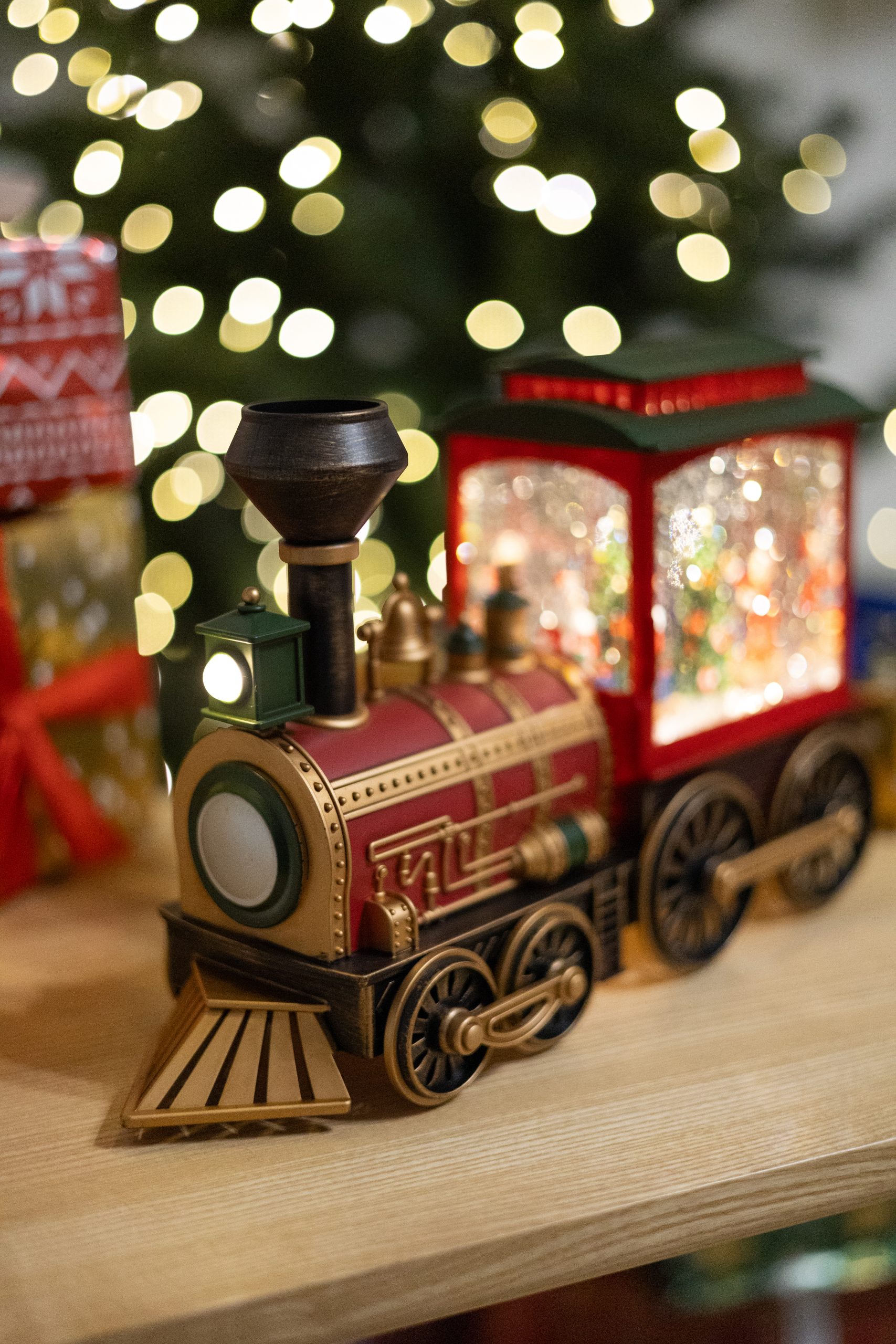 ✨Потяг має чарівний сюжет: “Санта за кермом потяга, ельф прикрашає ялинку”. Картину доповнють святкові подарунки та мішок з подарунками. В ліхтарі – крутиться ялинка всередині, що заворожує погляд та створює неймовірний ефект.