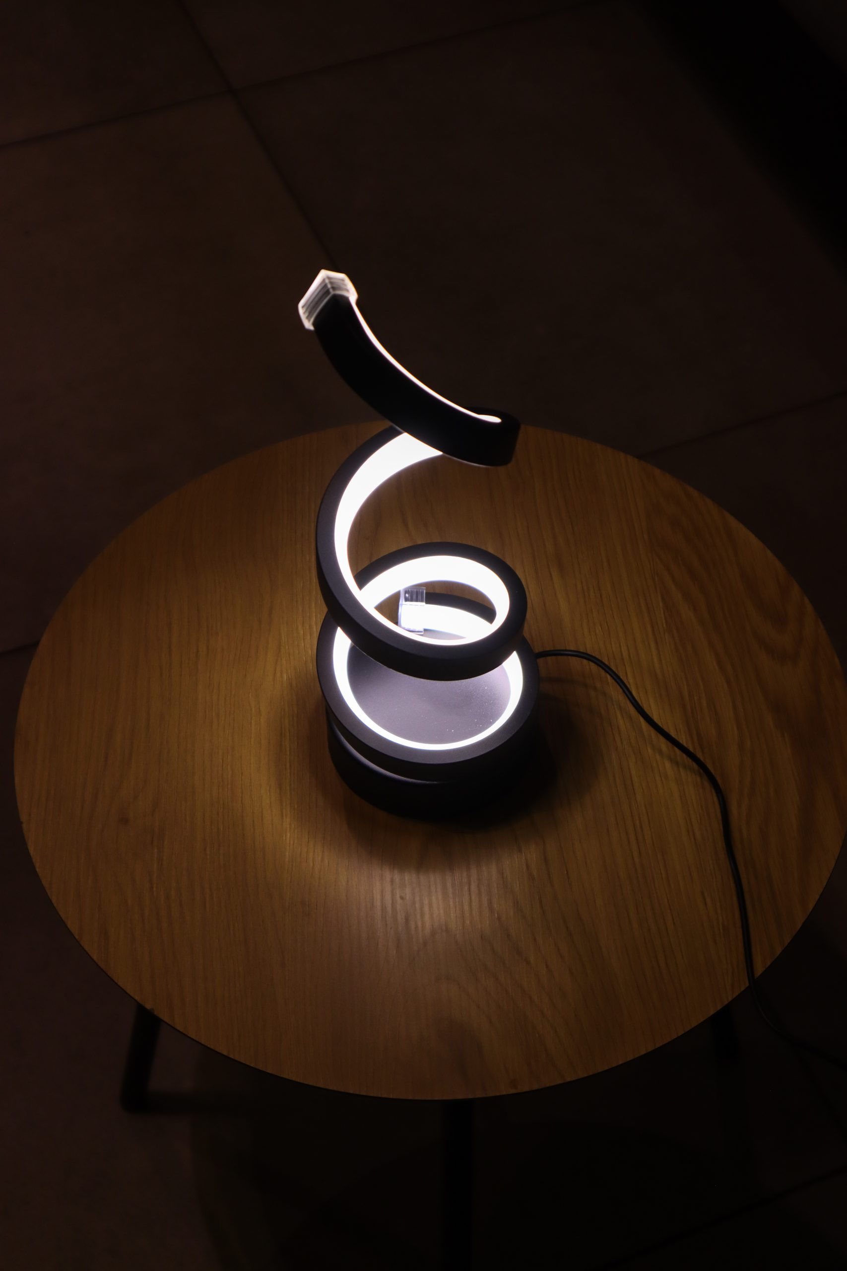 Лампа-нічник “Спіраль” – це стильне і зручне джерело освітлення, яке чудово підходить для використання на столі, на меблях біля ліжка, або в будь-якій частині кімнати. Завдяки стильному дизайну, лампа створить не лише джерело освітлення, а й стане гарним доповненням Вашого інтер’єру.