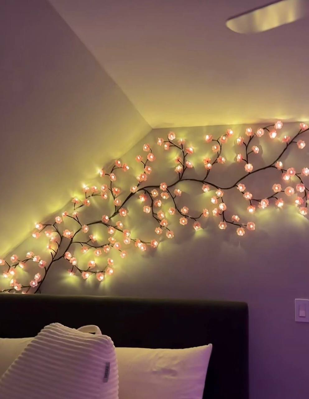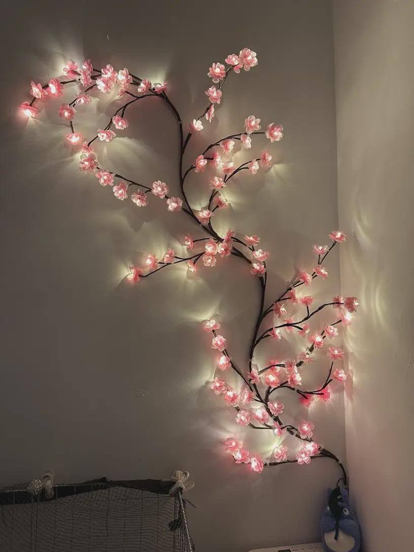 🌸 Гірлянда настінна “Гілка сакури”, тепле світло — витончений декор, що наповнить простір атмосферою весни та гармонії. Ніжні рожеві квіти на гілочках створюють ефект живої сакури, а тепле підсвічування додає м’якості й чарівності будь-якому інтер’єру.