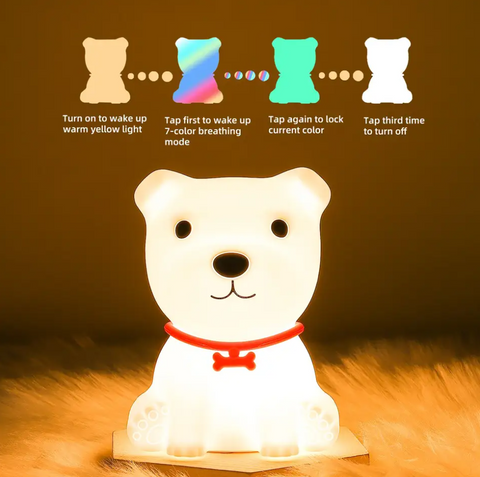 Дитячий м’який нічник “Песик” має вбудовану батарею, ємністю 1200 мАг. Зарядити батарею можна через USB-кабель, який іде в комплекті з нічником.
