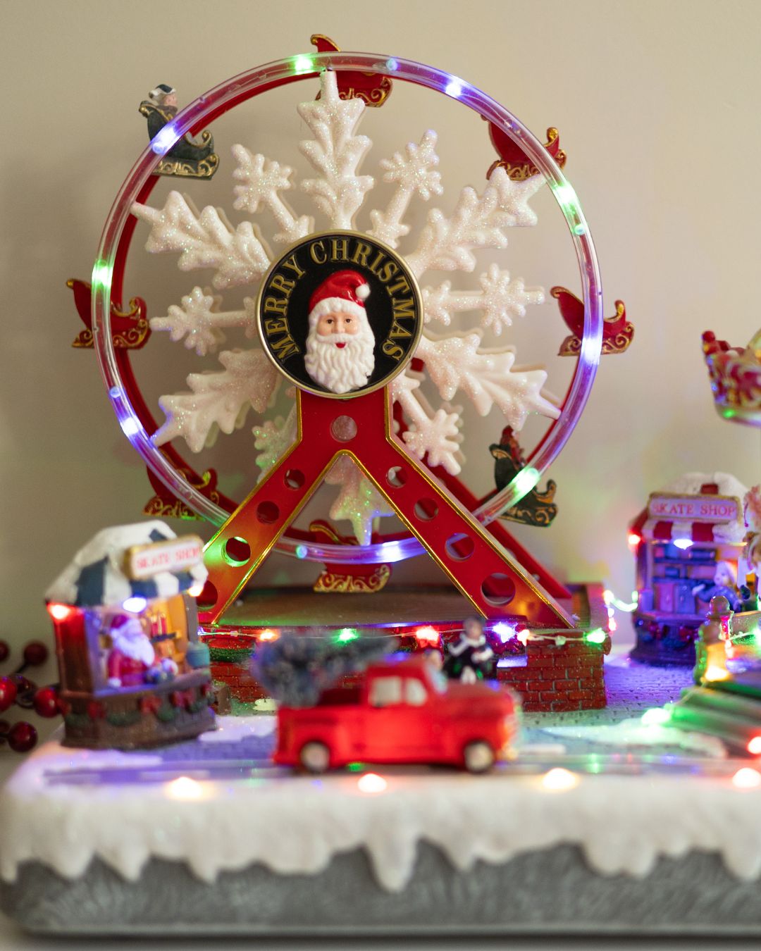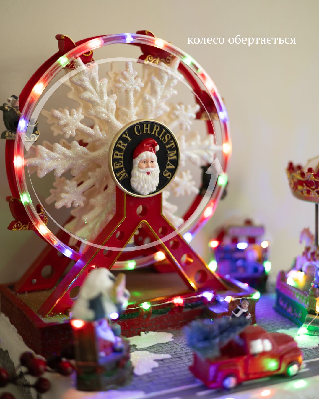 - Крутиться оглядове колесо зі сніжинкою.