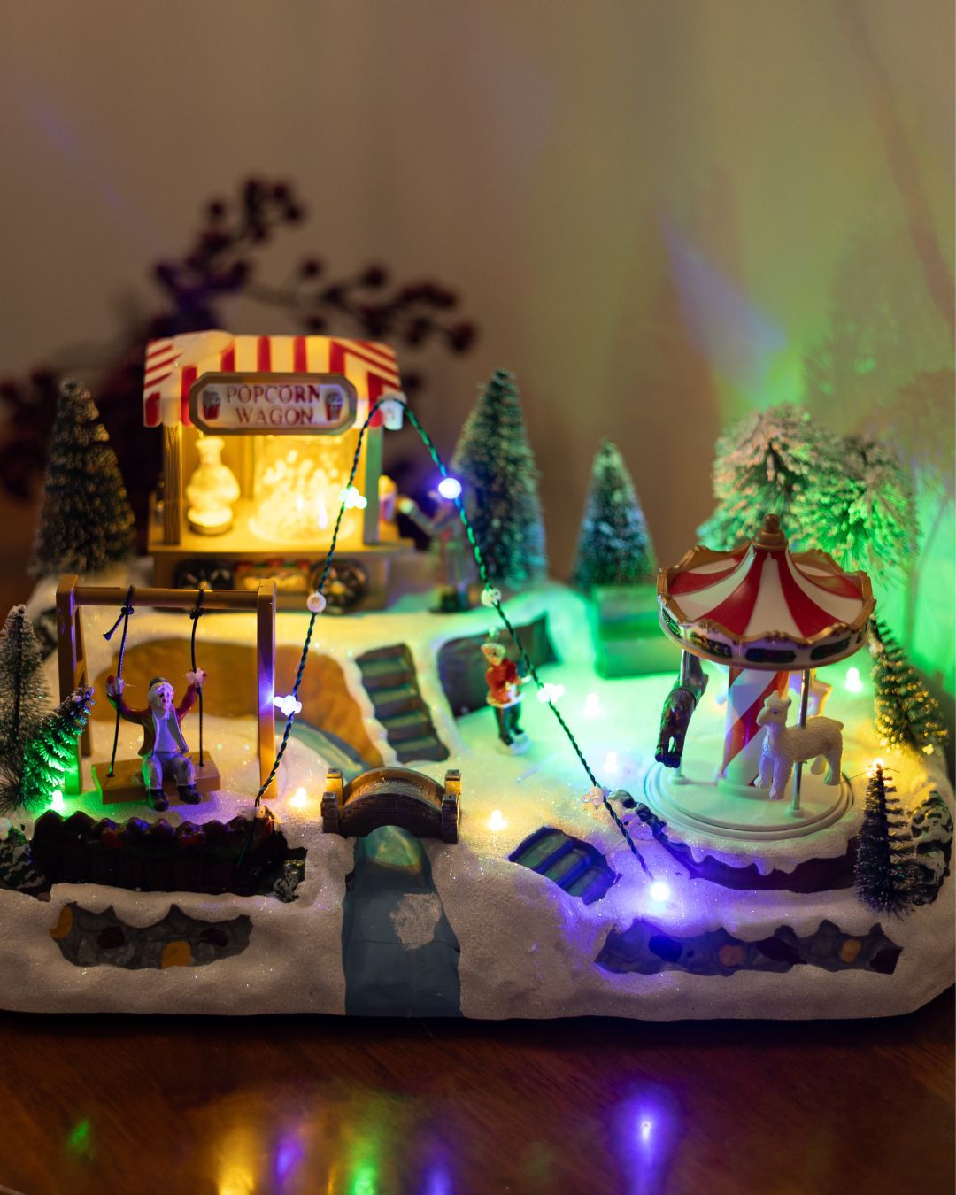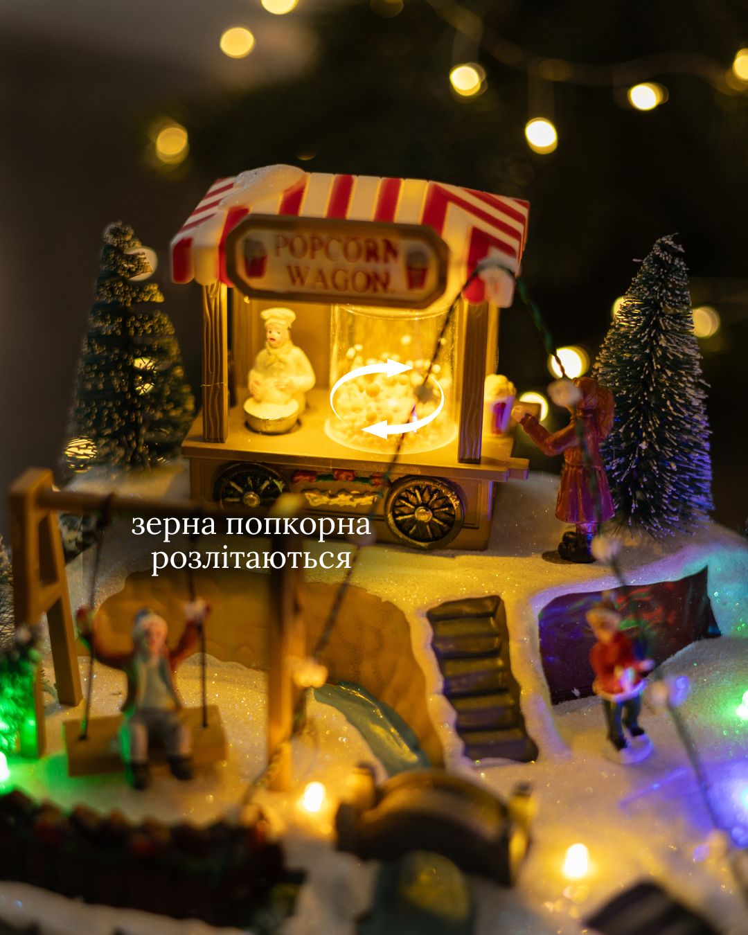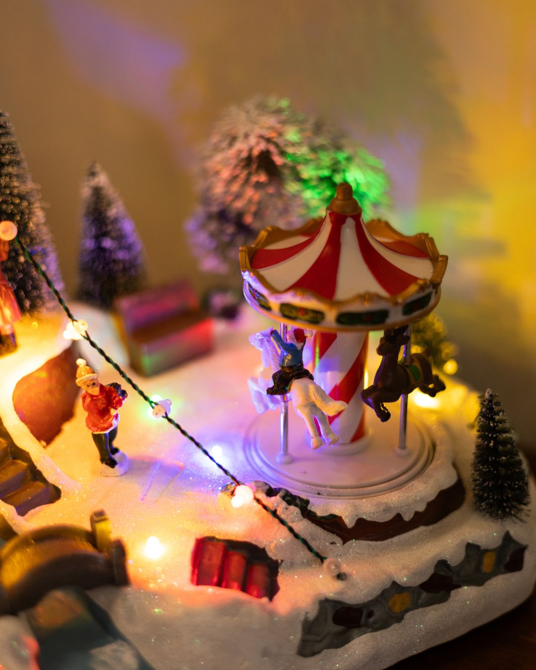 - Карусель – крутиться навколо своєі осі з 3 фігурками коней та хлопчика.
