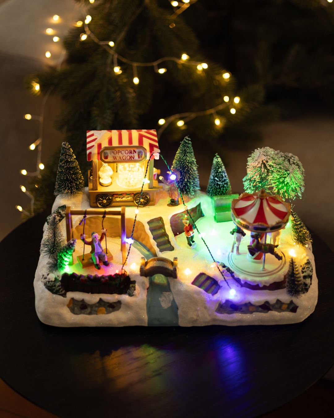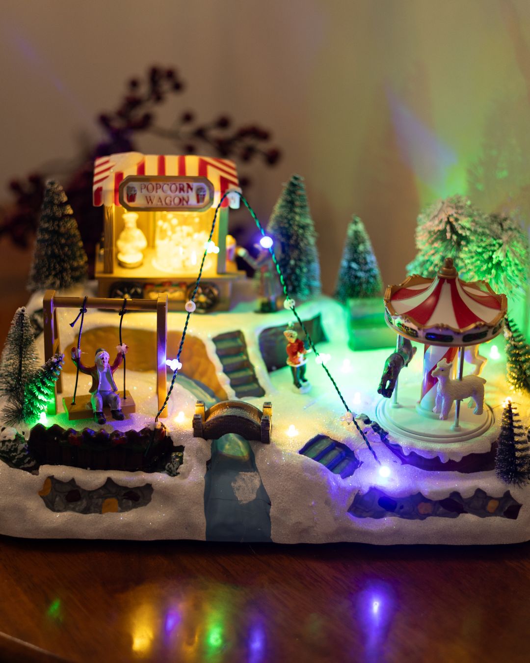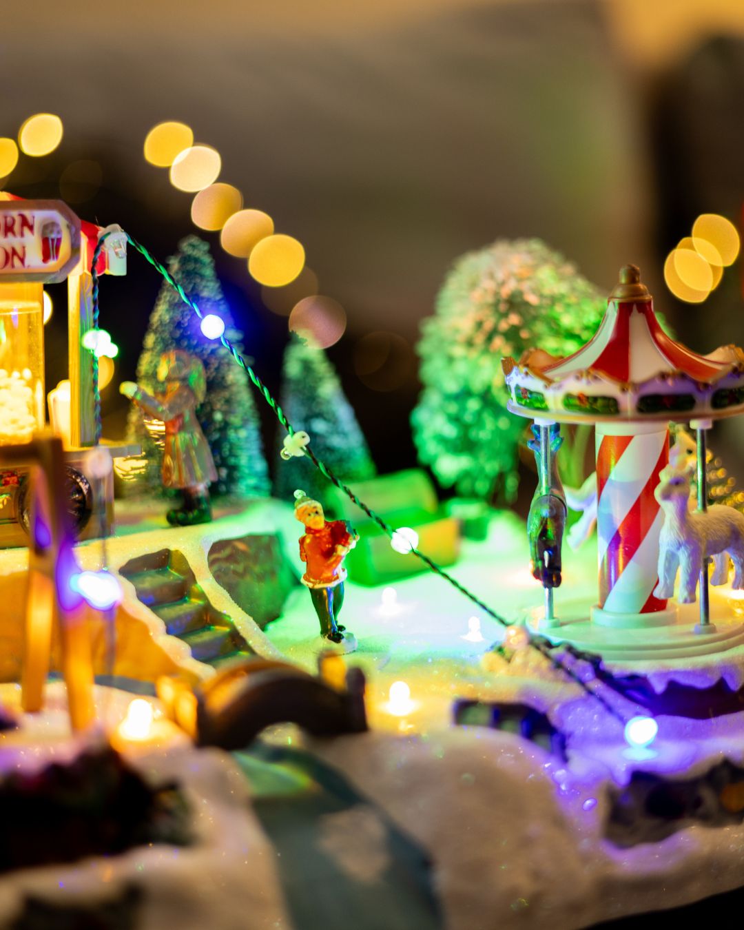 - Карусель – крутиться навколо своєі осі з 3 фігурками коней та хлопчика.