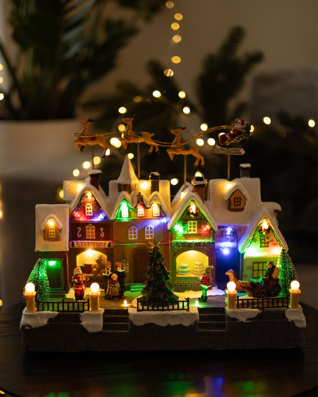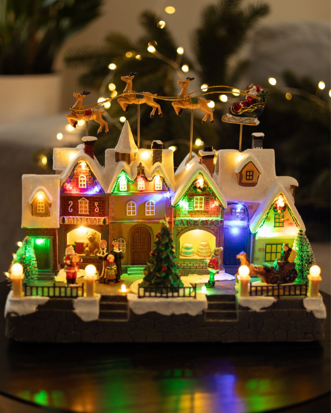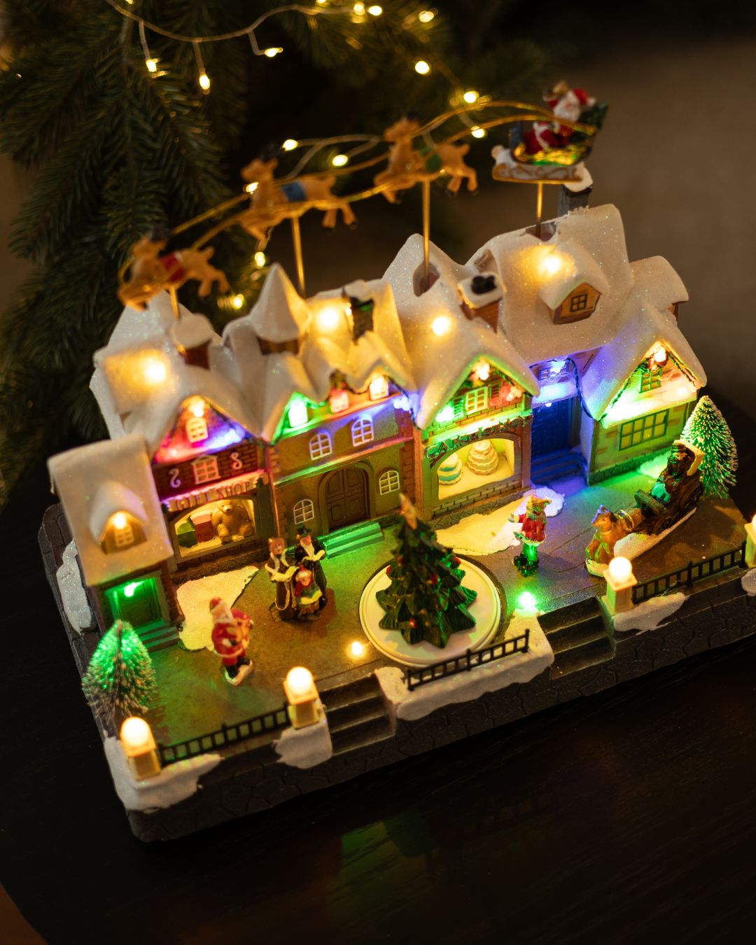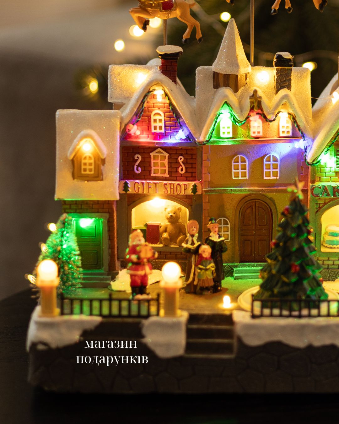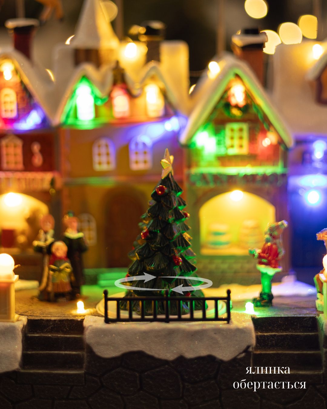 - Два режима роботи: підсвітка та музикальний супровід (7 новорічних мелодій) та підсвітка без музики;