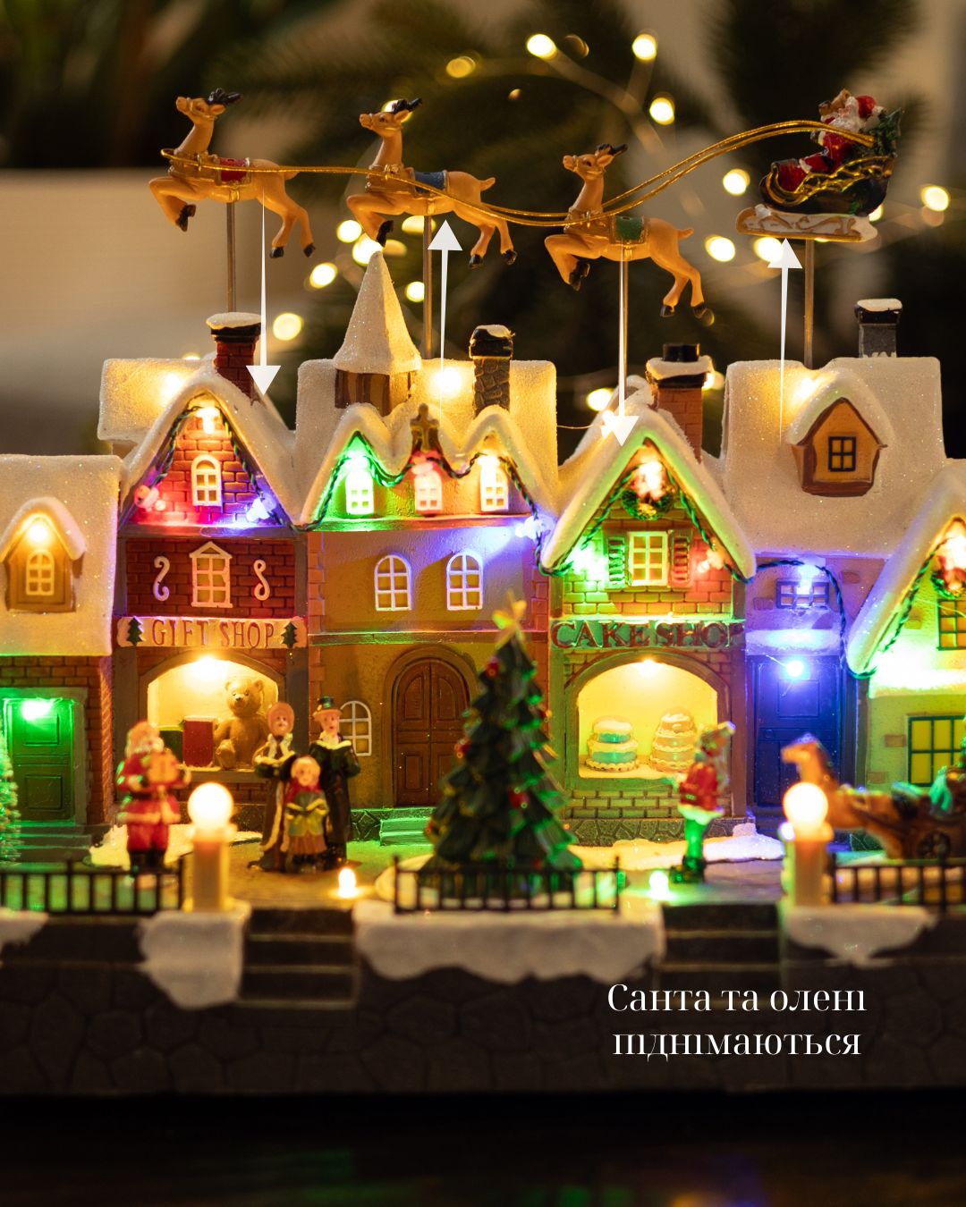 - Святкові олені – рухаються зверху вниз по черзі, створюючи імітацію польоту.