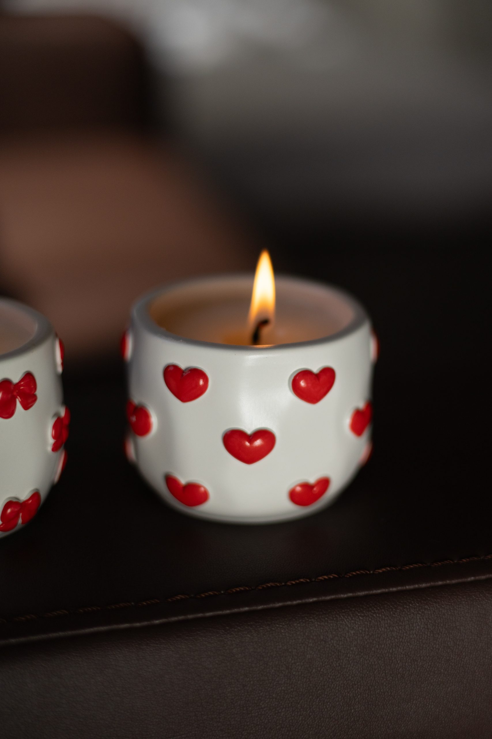 Свічка у гіпсовому кашпо з сердечками та бантиками