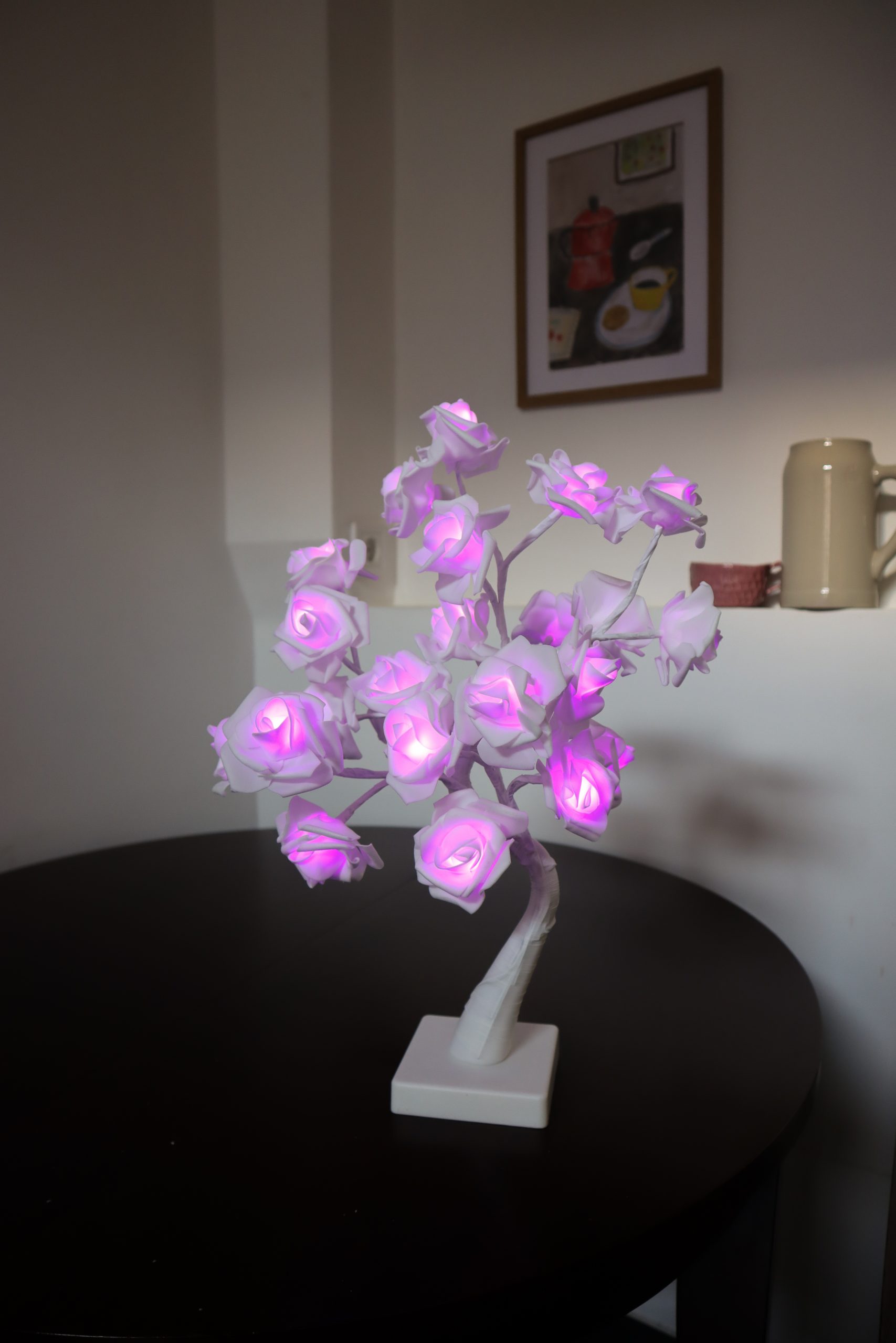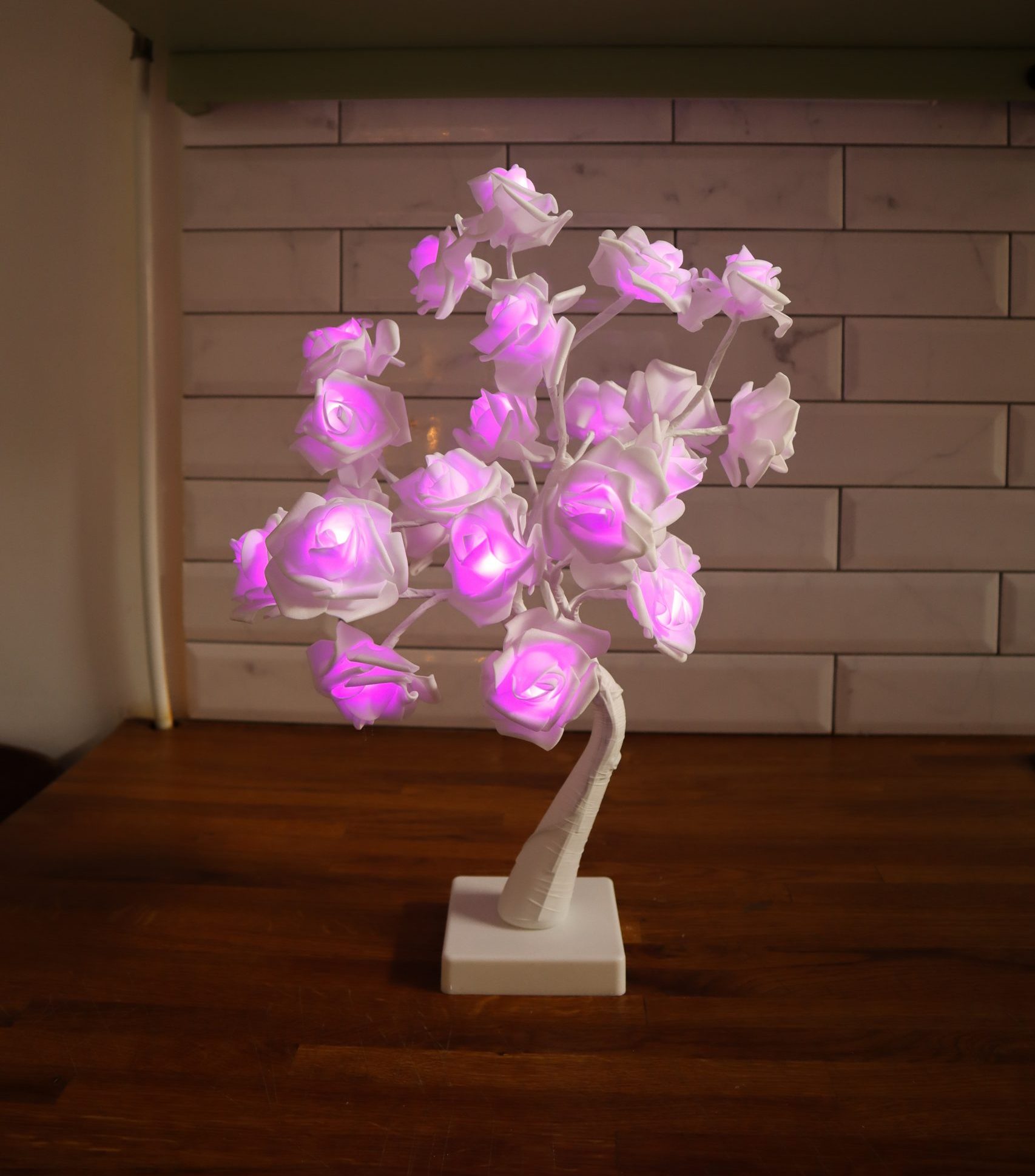Сяюче дерево “Білі троянди” – це цікаве доповнення інтер’єру та одночасно – нічник, що додасть атмосферного світла до Вашого простору. Дерево-нічник можна розмістити в дитячій кімнаті, спальні, приміщенні кафе або ресторану. Воно чудово виглядиме на столі, полицях або підлозі, доповнить святкову атмосферу та стане в нагоді цілий рік.