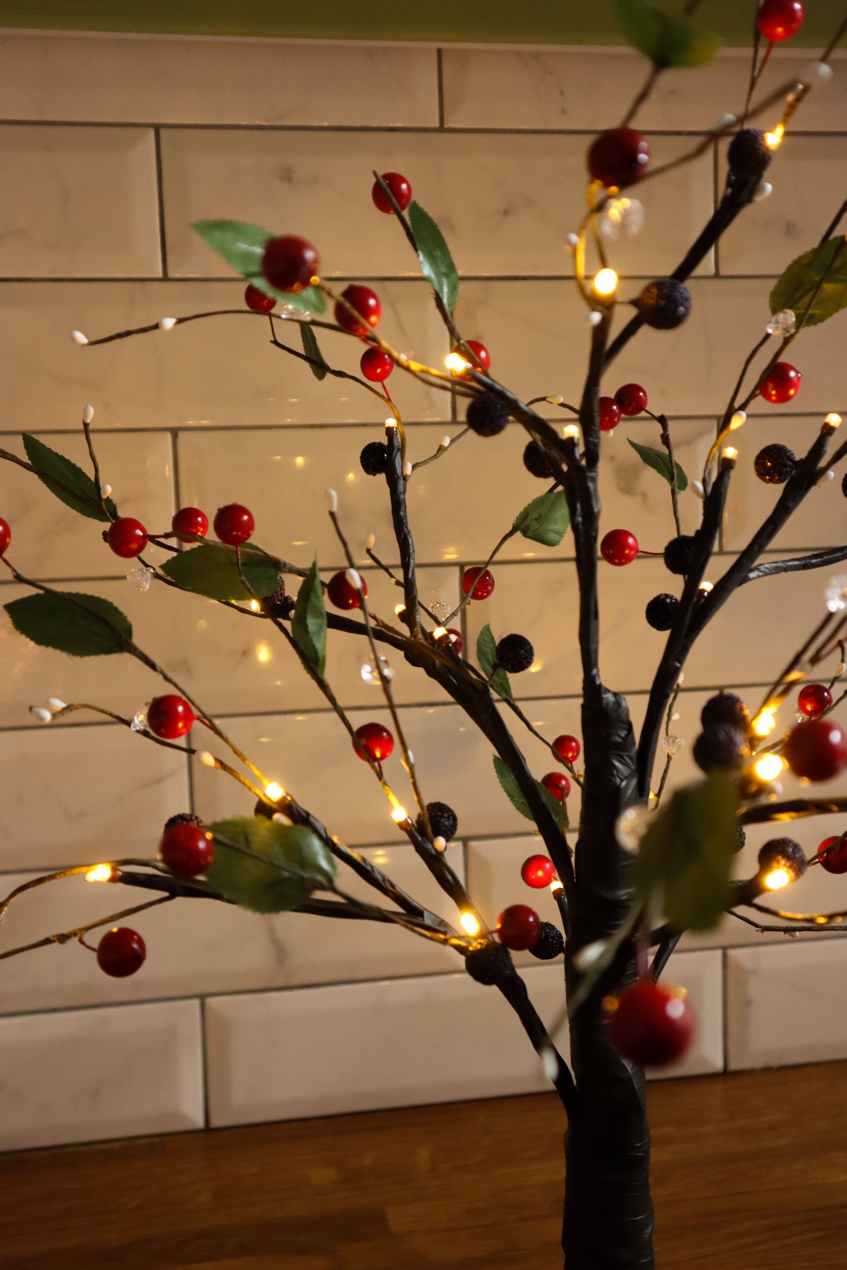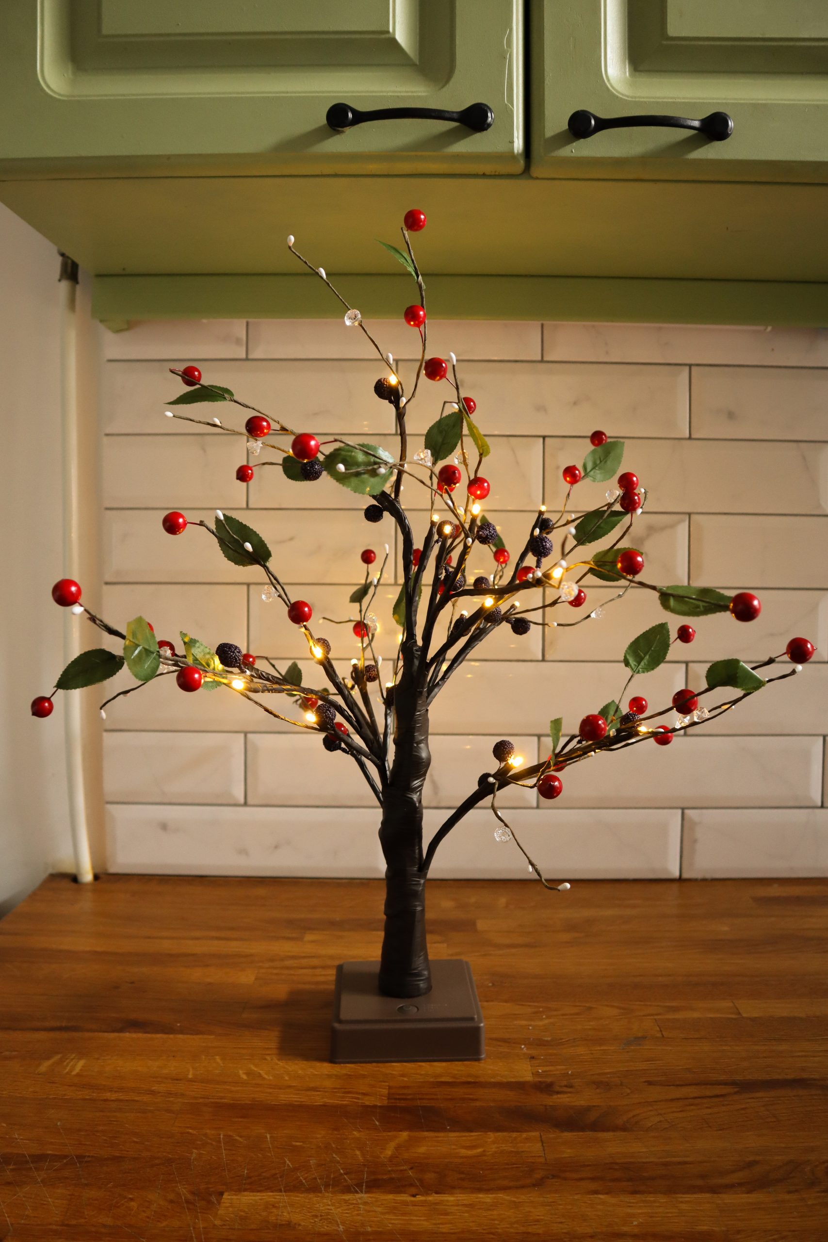 Дерево складається з чорного стовбура та витончених довгих гілочок, на яких розміщені червоні ягоди, зелені листочки та білі кристали. Реалістичний зовнішній вигляд “Калини” у поєднанні з теплим світлом та висотою 60 см. зробить дерево яскравим акцентом будь-якої кімнати. Світлодіодні лампочки квітів не нагріваються та є повністю безпечними.