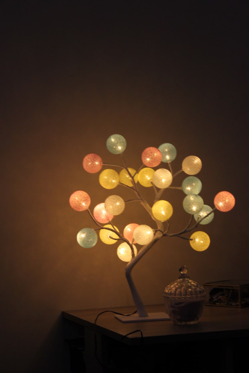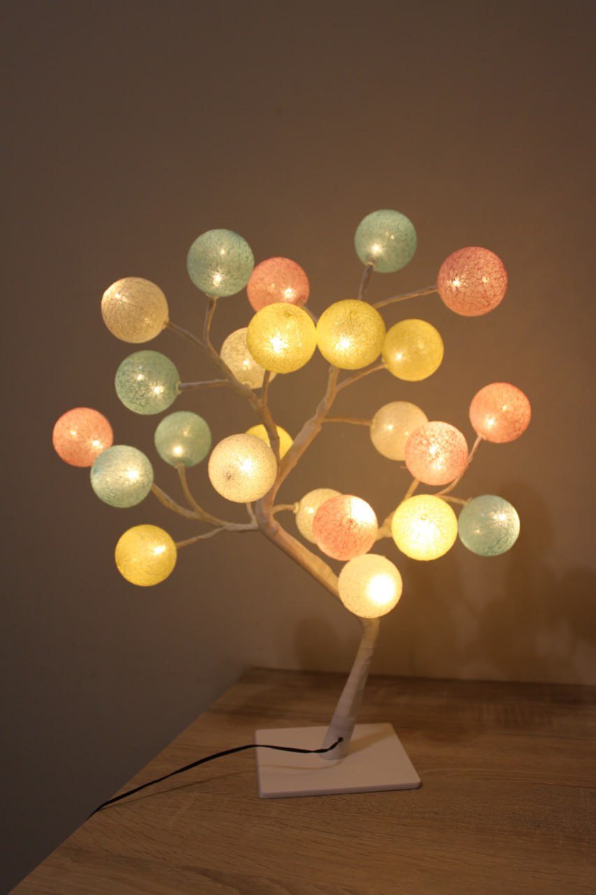 Сяюче дерево “З клубочками” – це цікаве доповнення інтер’єру та одночасно – нічник, що додасть атмосферного світла до Вашого простору. Дерево-нічник можна розмістити в дитячій кімнаті, спальні, приміщенні кафе або ресторану. Воно чудово виглядиме на столі, полицях або підлозі, буде актуальним в декорі цілий рік.