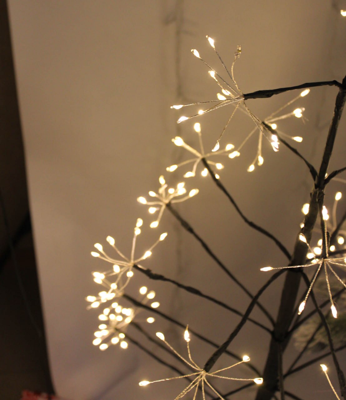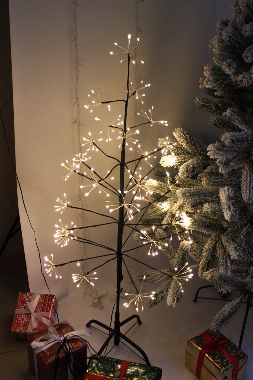 На гілочках розміщені по 8-10 ламп теплого світла, що нагадує справжнє суцвіття квітів та виглядає чарівно. Мінімалістичний стиль дерева чудово пасує до сучасного декору, а яскраві вогники атмосферно освітять Ваш сад або інтер’єр.