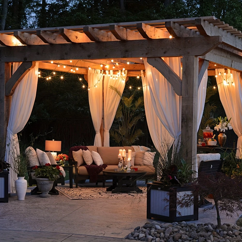 Вуличну гірлянду можна розмістити по периметру над бесідкою або терасою закладу, адже саме гірлянда додає атмосферу затишності та “душевності”. Лампочки виглядають дуже стильно, додають приємного теплого світла.