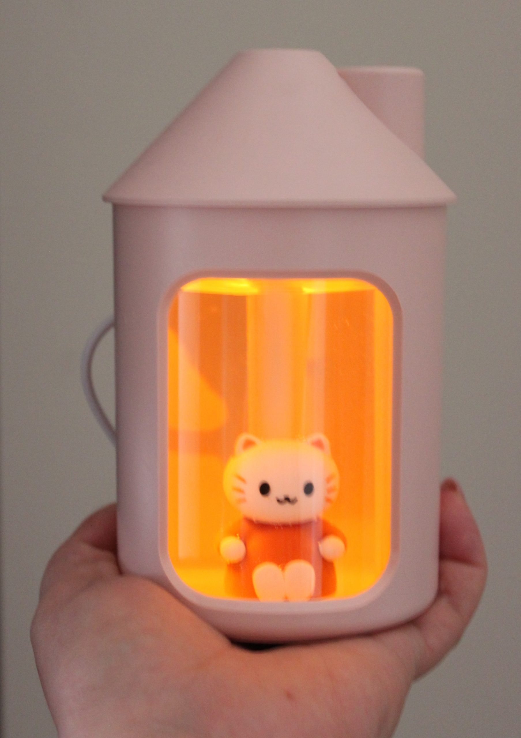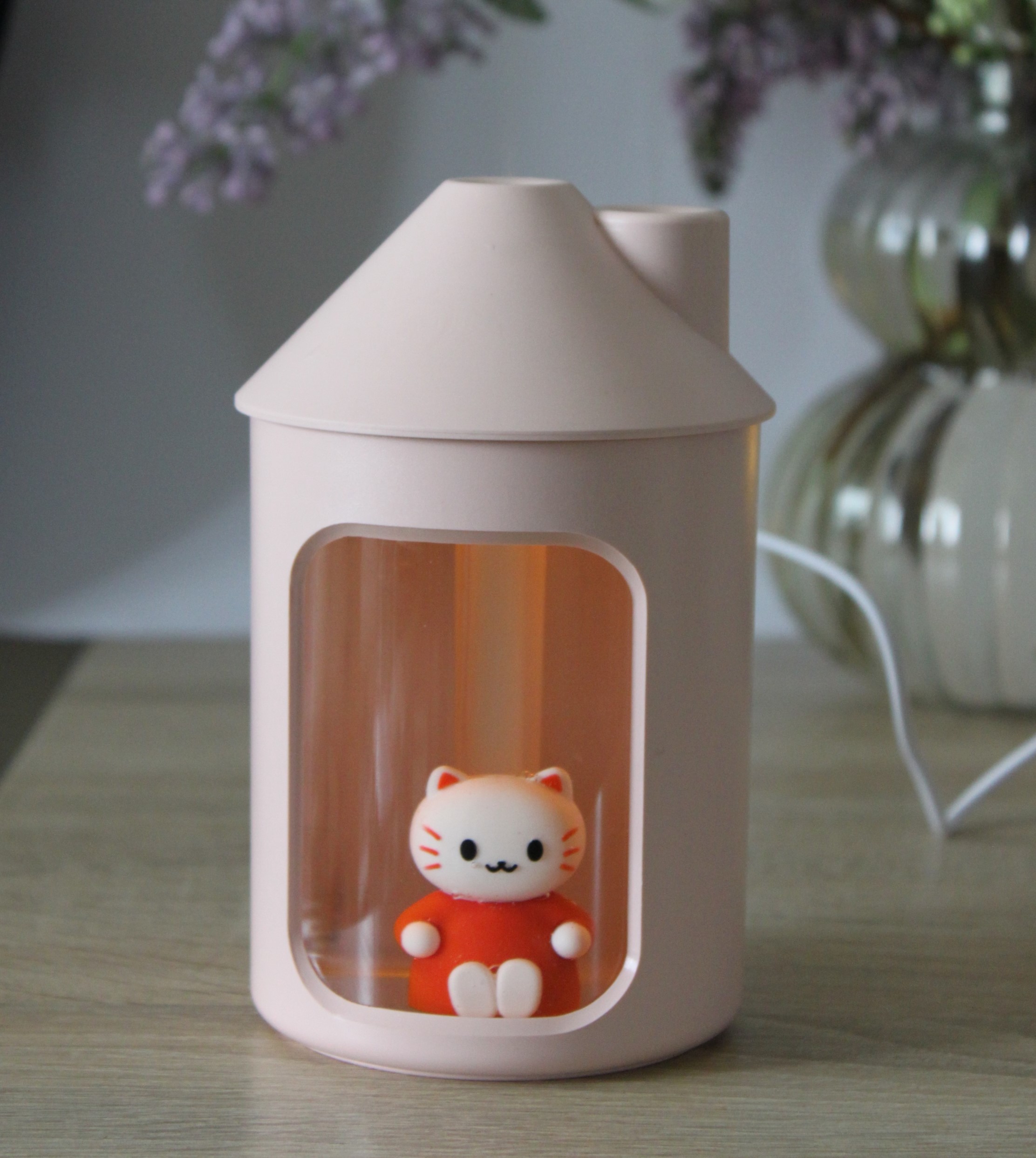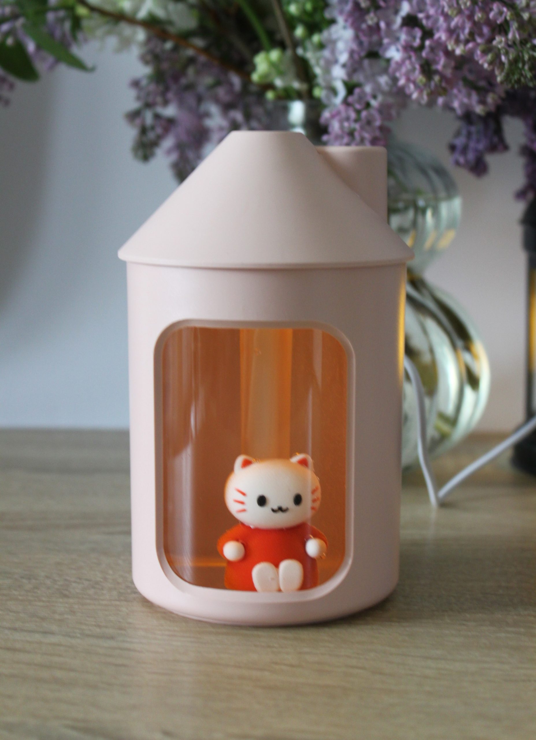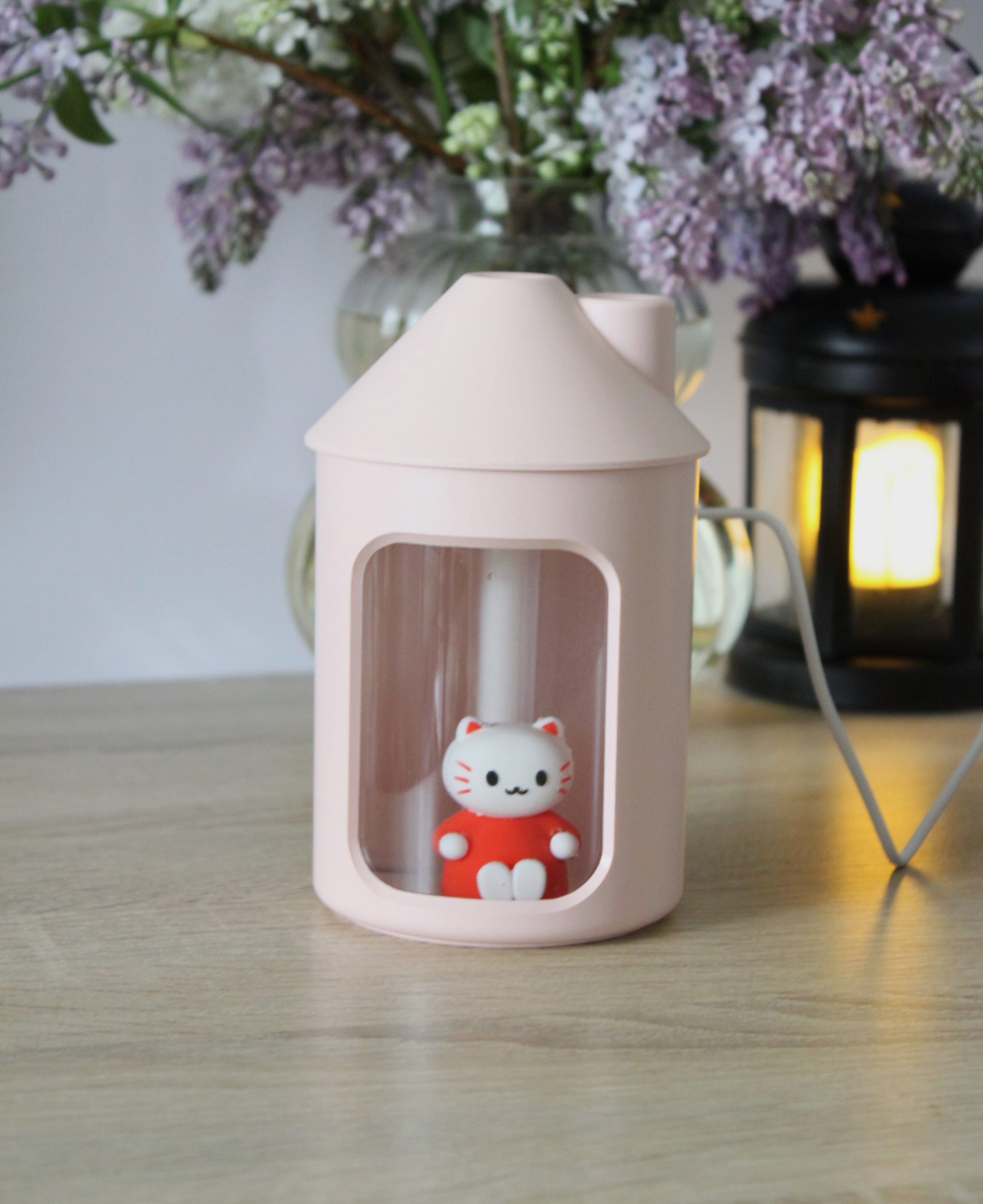Зволожувач повітря у ніжно-рожевому кольорі та з милим котеням всередині – стане улюбленим аксесуаром у кімнаті Вашої донечки, онуки чи похресниці. Додавши ефірні олії з улюбленим запахом, наповніть кімнату неймовірним ароматом!