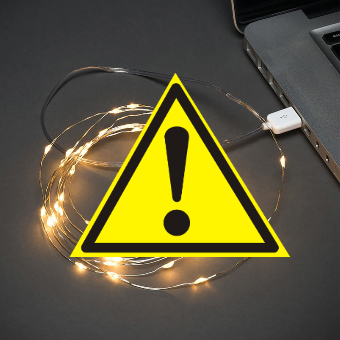 Категорично заборонено підключати гірлянду (або інші малопотужні пристрої), в повербанк з напругою більше 5 V або з «функцією швидкої зарядки» (червоний роз’єм), адже в такому випадку гірлянда може перегоріти.
